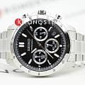 Мужские кварцевые часы Seiko SBTR013 из коллекции Spirit — это сочетание точности, функциональности и современного дизайна. Часы оснащены японским механизмом калибра 8T63 с функцией хронографаХронографФункция позволяет измерять отрезки времени с особой точностью: часы, минуты, секунды. Верным признаком хронографа является наличие на циферблате 3 дополнительных окошек-счётчиков., включающей секундомер с точностью 1/5 секунды и временем измерения до 1 часа, отображаемый центральной стрелкой. Также реализована функция тахиметраТахиметрРазмеченная шкала, располагается на ободке или безеле часов. Тахиметр позволяет рассчитать скорость на определённом участке пути, расстояние измеряется в километрах или милях.. Центральные часовая и минутная стрелки дополнены вынесенной секундной стрелкой на отдельном циферблате, окошко даты расположено между отметками 4 и 5 часов. Циферблат чёрного цвета оформлен штриховыми метками, стрелки и метки покрыты люминесцентным покрытиемЛюминесцентное покрытиеПозволяет считывать показания времени в темноте. Производители наносят на стрелки, часовые индексы, безель или поверхность циферблата светонакопительный состав, дающий холодное свечение. LumiBrite, обеспечивающим хорошую читаемость в темноте. Корпус выполнен из нержавеющей стали и защищён прочным минеральным стеклом Hardlex, устойчивым к царапинам. Браслет из нержавеющей стали фиксируется на раскладной застёжкеРаскладная застёжкаТакой тип застёжки используется только на браслетах из металла. Она никогда не раскрывается полностью, происходит разделение на 2 и более частей. Раскладывающая застёжка снизит вероятность потери часов к минимуму.. Водонепроницаемость 100 м позволяет использовать часы для плавания, ныряния и других водных видов спорта. Модель подходит как для повседневного, так и для делового образа.