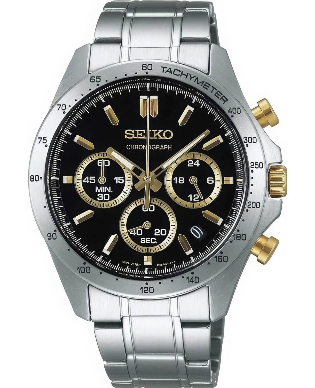Мужские кварцевые часы Seiko SBTR015 из коллекции Spirit — это сочетание точности, функциональности и современного дизайна. Часы оснащены японским механизмом калибра 8T63 с функцией хронографаХронографФункция позволяет измерять отрезки времени с особой точностью: часы, минуты, секунды. Верным признаком хронографа является наличие на циферблате 3 дополнительных окошек-счётчиков., включающей секундомер с точностью 1/5 секунды и временем измерения до 1 часа, отображаемый центральной стрелкой. Также реализована функция тахиметраТахиметрРазмеченная шкала, располагается на ободке или безеле часов. Тахиметр позволяет рассчитать скорость на определённом участке пути, расстояние измеряется в километрах или милях.. Центральные часовая и минутная стрелки дополнены вынесенной секундной стрелкой на отдельном циферблате, окошко даты расположено между отметками 4 и 5 часов. Циферблат чёрного цвета оформлен штриховыми метками, стрелки и метки покрыты люминесцентным покрытиемЛюминесцентное покрытиеПозволяет считывать показания времени в темноте. Производители наносят на стрелки, часовые индексы, безель или поверхность циферблата светонакопительный состав, дающий холодное свечение. LumiBrite, обеспечивающим хорошую читаемость в темноте. Корпус выполнен из нержавеющей стали и защищён прочным минеральным стеклом Hardlex, устойчивым к царапинам. Браслет из нержавеющей стали фиксируется на раскладной застёжкеРаскладная застёжкаТакой тип застёжки используется только на браслетах из металла. Она никогда не раскрывается полностью, происходит разделение на 2 и более частей. Раскладывающая застёжка снизит вероятность потери часов к минимуму.. Водонепроницаемость 100 м позволяет использовать часы для плавания, ныряния и других водных видов спорта. Модель подходит как для повседневного, так и для делового образа.