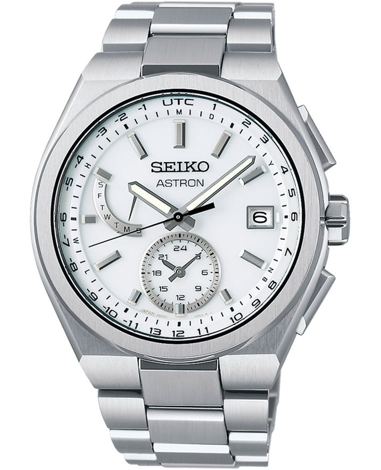 Мужские кварцевые часы Seiko — это высокотехнологичный аксессуар с солнечным питанием и радиосинхронизацией. Корпус диаметром 41 мм и толщиной 11 мм выполнен из гипоаллергенного титана. Циферблат белого цвета оформлен индексами и стрелками. Окошко даты расположено в положении 3 часов. Указатель второго часового пояса вынесен на отдельную шкалу. Стрелки и метки с люминесцентным покрытиемЛюминесцентное покрытиеПозволяет считывать показания времени в темноте. Производители наносят на стрелки, часовые индексы, безель или поверхность циферблата светонакопительный состав, дающий холодное свечение. LumiBrite, обеспечивающим хорошую читаемость в темноте. Циферблат защищён сапфировым стекломСапфировое стеклоПрочный и надёжный материал из кристалла сапфира синтетического происхождения, характеризующийся особой твёрдостью и устойчивостью к царапинам и повреждениям. с антибликовым покрытиемАнтибликовое покрытиеСлой оксида металла в 0,13-0,3 микрон, благодаря которому стекло часов не бликует и не отражает свет. Антибликовое покрытие уменьшает отражение света в 10 раз, обеспечивая отличную читаемость показателей циферблата. для максимальной прозрачности. Механизм — кварцевый калибр 8B63 с технологией Tough SolarTough SolarТехнология основана на подзарядке аккумулятора от источника солнечного света, специальная панель улавливает солнечные лучи и преобразует их в энергию для работы часов. Достаточно пары минут нахождения на солнце для функционирования часов в течении суток., обеспечивающей работу до 6 месяцев в обычном режиме и до 2 лет в режиме энергосбережения. Часы поддерживают автоматическую радиокоррекцию времени, имеют функцию мирового времениМировое время Полезное часовое усложнение, отображающее время в основных городах и известных областях по всему миру, оно связано с часовыми поясами, удобно для путешественников и бизнесменов. , второго часового поясаВторой часовой поясФункция, позволяющая отображать время двух часовых поясов одновременно., вечный календарьВечный календарьКлассическое часовое усложнение, представляющее собой календарь, рассчитанный на несколько лет вперёд (стандартно – до 2099 года). Определяет текущую дату, день недели, месяц. (до 28 февраля 2100 года) и 12/24-часовой формат времени. Завинчивающаяся заводная головка повышает защиту. Часы оснащены титановым браслетом с раскладной застёжкойРаскладная застёжкаТакой тип застёжки используется только на браслетах из металла. Она никогда не раскрывается полностью, происходит разделение на 2 и более частей. Раскладывающая застёжка снизит вероятность потери часов к минимуму.. Водонепроницаемость 100 м позволяет использовать часы для плавания и повседневного ношения. Идеальный выбор для тех, кто ценит точность, лёгкость и передовые технологии.