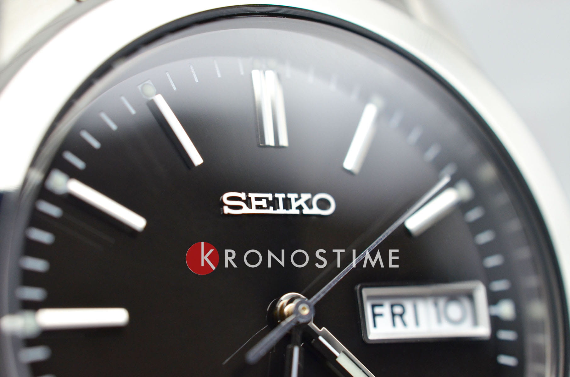 Мужские кварцевые часы Seiko — это элегантный аксессуар в классическом стиле. Корпус размером 38 мм и толщиной 8 мм выполнен из нержавеющей стали. Циферблат чёрного цвета оформлен индексами и стрелками. Указатели дня недели и даты вынесены на отдельные субциферблаты. Стрелки и метки с люминесцентным покрытиемЛюминесцентное покрытиеПозволяет считывать показания времени в темноте. Производители наносят на стрелки, часовые индексы, безель или поверхность циферблата светонакопительный состав, дающий холодное свечение., обеспечивающим хорошую читаемость в темноте. Циферблат защищён прочным защищён минеральным стекломМинеральное стеклоМинеральное стекло представляет собой искусственно выращенный минерал кварца. Такое стекло отличается особой устойчивостью к повреждениям и царапинам. Уступает по некоторым качествам сапфировому стеклу. от компании Seiko. Часы оснащены стальным браслетом с раскладной застёжкойРаскладная застёжкаТакой тип застёжки используется только на браслетах из металла. Она никогда не раскрывается полностью, происходит разделение на 2 и более частей. Раскладывающая застёжка снизит вероятность потери часов к минимуму.. Водонепроницаемость 30 м позволяет использовать часы в повседневных условиях. Идеальный выбор для тех, кто ценит японское качество и лаконичный дизайн.
