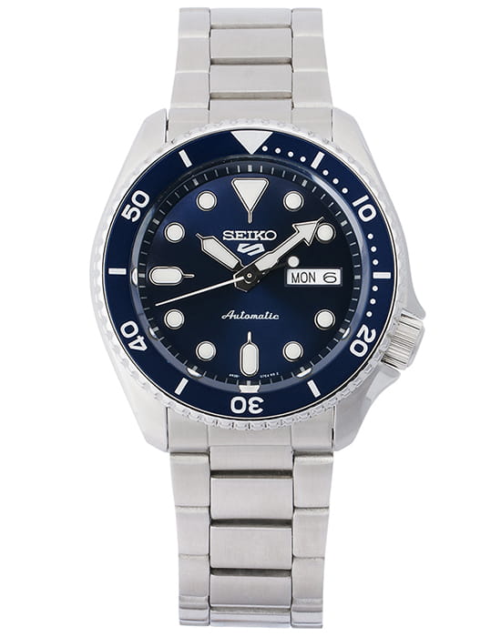 Механические часы Seiko SRPD51K1 из коллекции 5 Sports — это надёжный и функциональный аксессуар, сочетающий в себе точность, прочность и узнаваемый дизайн. Модель оснащена калибром 4R36 с автоподзаводом и возможностью ручной подзаводки. Механизм имеет 24 драгоценных камня и обеспечивает запас хода до 41 часа. Также реализована функция стоп-секунды для точной установки времени, а также отображение дня недели и даты. Циферблат синего цвета выполнен по технологии Sunray, имитирующей солнечные лучи. Метки представлены в виде штрихов и точек, а стрелки и индексы покрыты фирменным люминесцентным составомЛюминесцентное покрытиеПозволяет считывать показания времени в темноте. Производители наносят на стрелки, часовые индексы, безель или поверхность циферблата светонакопительный состав, дающий холодное свечение. LumiBrite, обеспечивающим отличную читаемость даже в темноте. Защиту циферблата обеспечивает минеральное стеклоМинеральное стеклоМинеральное стекло представляет собой искусственно выращенный минерал кварца. Такое стекло отличается особой устойчивостью к повреждениям и царапинам. Уступает по некоторым качествам сапфировому стеклу. повышенной прочности Hardlex. Часы имеют односторонне вращающийся безельБезельВнешний ободок, закрепляющий стекло. В спортивных часах так называется поворотное кольцо с делениями на циферблате, выполняет роль таймера – замеряет отрезки времени на шкале. Неподвижный безель – элемент декора. Однонаправленно вращающийся безель на дайверских часах позволяет фиксировать моменты погружения и выныривания на поверхность. — удобный элемент для контроля времени при водных активностях. Заводная головка с защитой расположена в положении 4 часов, что повышает комфорт при ношении. Задняя крышка — завинчивающаяся и прозрачная, что позволяет наблюдать за работой механизма. Корпус диаметром 42,5 мм изготовлен из стали с частичным PVD-покрытиемPVDУльтратонкое покрытие наносится в технике вакуумного напыления, сочетает в себе нитрид титана особой прочности со слоем золота или оксида хрома. Несёт в себе декоративную или защитную функцию., придающим модели благородный внешний вид. Браслет выполнен из стали и оснащён трёхсгибной раскладной застёжкойРаскладная застёжкаТакой тип застёжки используется только на браслетах из металла. Она никогда не раскрывается полностью, происходит разделение на 2 и более частей. Раскладывающая застёжка снизит вероятность потери часов к минимуму. с системой блокировки, обеспечивающей комфорт и уверенную фиксацию на запястье. Ширина браслета составляет 22 мм, что делает его гармонично сочетающимся с корпусом. Часы водонепроницаемы до 100 метров (), что позволяет использовать их при плавании и других водных активностях. Также реализована защита от магнитных полей до 4800 А/м. Эти часы станут универсальным аксессуаром для тех, кто ценит сочетание технологичности, прочности и эстетики — идеальный выбор как для повседневного использования, так и для активного образа жизни.