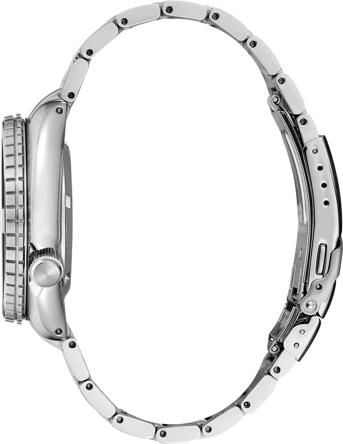 Seiko Prospex PADI Special Edition SRPK01K1 — профессиональные автоматические часы, созданные в рамках сотрудничества с PADI, крупнейшей организацией инструкторов по дайвингу. Массивный корпус диаметром 45 мм выполнен из нержавеющей стали и защищён завинчивающейся задней крышкой и заводной головкой. Циферблат закрыт прочным сапфировым стекломСапфировое стеклоПрочный и надёжный материал из кристалла сапфира синтетического происхождения, характеризующийся особой твёрдостью и устойчивостью к царапинам и повреждениям. с антибликовым покрытиемАнтибликовое покрытиеСлой оксида металла в 0,13-0,3 микрон, благодаря которому стекло часов не бликует и не отражает свет. Антибликовое покрытие уменьшает отражение света в 10 раз, обеспечивая отличную читаемость показателей циферблата. и увеличительным стеклом над календарём. Градиентный синий циферблат с волнистым узором имитирует солнечные блики на воде и украшен логотипом PADI. Метки и стрелки покрыты люминесцентным покрытиемЛюминесцентное покрытиеПозволяет считывать показания времени в темноте. Производители наносят на стрелки, часовые индексы, безель или поверхность циферблата светонакопительный состав, дающий холодное свечение. LumiBrite для превосходной читаемости в темноте и под водой. БезельБезельВнешний ободок, закрепляющий стекло. В спортивных часах так называется поворотное кольцо с делениями на циферблате, выполняет роль таймера – замеряет отрезки времени на шкале. Неподвижный безель – элемент декора. Однонаправленно вращающийся безель на дайверских часах позволяет фиксировать моменты погружения и выныривания на поверхность. с PVD-покрытиемPVDУльтратонкое покрытие наносится в технике вакуумного напыления, сочетает в себе нитрид титана особой прочности со слоем золота или оксида хрома. Несёт в себе декоративную или защитную функцию.. Модель оснащена автоматическим механизмом Seiko 4R36 с ручным заводом, 24 камнями и функцией остановки секундной стрелки. Запас хода составляет около 41 часа. На циферблате — отображение времени, даты и дня недели на позиции «3 часа». Браслет из нержавеющей стали снабжён тройной раскладной застёжкойРаскладная застёжкаТакой тип застёжки используется только на браслетах из металла. Она никогда не раскрывается полностью, происходит разделение на 2 и более частей. Раскладывающая застёжка снизит вероятность потери часов к минимуму. с кнопками и удлинением для дайверовУдлинение для дайверовЗастёжка с удлинением для дайверов представляет собой безопасное крепление, которое позволяет надевать часы поверх гидрокостюма. Гибкая застёжка удлиняется на 1-2 миллиметра.. Часы соответствуют ISO-стандарту и обладают водонепроницаемостью до 200 метров, что делает их надёжным выбором как для дайвинга, так и для повседневной носки. SRPK01 — мощная и функциональная модель с морским характером и профессиональными возможностями.