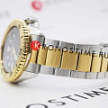Водозащита 100 метров (10 бар) позволяет использовать часы для плавания и других водных видов спорта. Стальной браслет с двухцветным PVD-покрытиемPVDУльтратонкое покрытие наносится в технике вакуумного напыления, сочетает в себе нитрид титана особой прочности со слоем золота или оксида хрома. Несёт в себе декоративную или защитную функцию. и раскладной застёжкойРаскладная застёжкаТакой тип застёжки используется только на браслетах из металла. Она никогда не раскрывается полностью, происходит разделение на 2 и более частей. Раскладывающая застёжка снизит вероятность потери часов к минимуму. обеспечивает комфортное ношение и надёжную фиксацию на запястье.
