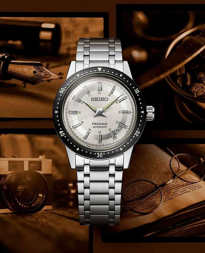 Мужские наручные часы Seiko SRPK61J1 из коллекции Presage Style 60s сочетают в себе классический дизайн и надежность современных технологий. Модель обладает круглым корпусом, изготовленным из нержавеющей стали, что обеспечивает высокую устойчивость к внешним воздействиям . Браслет также выполнен из нержавеющей стали с раскладной застежкойРаскладной замокДанный вариант застежки используется только на часах с металлическим браслетом. Отличительная особенность такого крепления в том, что длина браслета становится универсальной и вы можете самостоятельно отрегулировать нужный вам размер – застежка просто двигается по браслету часов., гарантирующей комфортное ношение . БезельБезельВнешний ободок, закрепляющий стекло. В спортивных часах так называется поворотное кольцо с делениями на циферблате, выполняет роль таймера – замеряет отрезки времени на шкале. Неподвижный безель – элемент декора. Однонаправленно вращающийся безель на дайверских часах позволяет фиксировать моменты погружения и выныривания на поверхность. с PVD-покрытиемPVDУльтратонкое покрытие наносится в технике вакуумного напыления, сочетает в себе нитрид титана особой прочности со слоем золота или оксида хрома. Несёт в себе декоративную или защитную функцию.. Циферблат часов украшен текстурой, которая подчеркивает винтажный стиль модели. Для защиты используется минеральное стеклоМинеральное стеклоМинеральное стекло представляет собой искусственно выращенный минерал кварца. Такое стекло отличается особой устойчивостью к повреждениям и царапинам. Уступает по некоторым качествам сапфировому стеклу. Hardlex Crystal, обеспечивающее прочную защиту от царапин . Часы работают на автоматическом механизме с калибром 4R35, который включает возможность ручного завода и обладает запасом хода до 41 часа . Часы также оснащены люминесцентным покрытиемЛюминесцентное покрытиеПозволяет считывать показания времени в темноте. Производители наносят на стрелки, часовые индексы, безель или поверхность циферблата светонакопительный состав, дающий холодное свечение. на стрелках и метках, обеспечивающим отличную видимость в темноте, а также имеет водонепроницаемость WR 50, что позволяет защитить корпус от случайных брызг и кратковременного контакта с водой. Вдохновленные культурой 60-х годов, эти часы демонстрируют уникальный стиль и внимание к деталям.