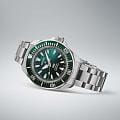 Мужские механические часы с автоподзаводом Seiko SRPL53K1 — надёжные дайверские часы в японском исполнении. Круглый корпус размером 41 мм из нержавеющей стали, зелёный циферблат с окошком даты между 4 и 5 часами. Стекло — минеральноеМинеральное стеклоМинеральное стекло представляет собой искусственно выращенный минерал кварца. Такое стекло отличается особой устойчивостью к повреждениям и царапинам. Уступает по некоторым качествам сапфировому стеклу. Hardlex. Стрелки, метки и безельБезельВнешний ободок, закрепляющий стекло. В спортивных часах так называется поворотное кольцо с делениями на циферблате, выполняет роль таймера – замеряет отрезки времени на шкале. Неподвижный безель – элемент декора. Однонаправленно вращающийся безель на дайверских часах позволяет фиксировать моменты погружения и выныривания на поверхность. с люминесцентным покрытиемЛюминесцентное покрытиеПозволяет считывать показания времени в темноте. Производители наносят на стрелки, часовые индексы, безель или поверхность циферблата светонакопительный состав, дающий холодное свечение. LumiBrite. БезельБезельВнешний ободок, закрепляющий стекло. В спортивных часах так называется поворотное кольцо с делениями на циферблате, выполняет роль таймера – замеряет отрезки времени на шкале. Неподвижный безель – элемент декора. Однонаправленно вращающийся безель на дайверских часах позволяет фиксировать моменты погружения и выныривания на поверхность. однонаправленно вращающийся. Механизм — японский калибр 4R35 (23 камня, запас хода 41 час), с функцией stop-second и возможностью ручного завода. Заводная головка — завинчивающаяся. Водонепроницаемость 200 м. Браслет — стальной на раскладной застёжкеРаскладная застёжкаТакой тип застёжки используется только на браслетах из металла. Она никогда не раскрывается полностью, происходит разделение на 2 и более частей. Раскладывающая застёжка снизит вероятность потери часов к минимуму. с надёжной фиксацией и удлинителем. Идеальный выбор для тех, кто ценит японское качество и профессиональную функциональность.