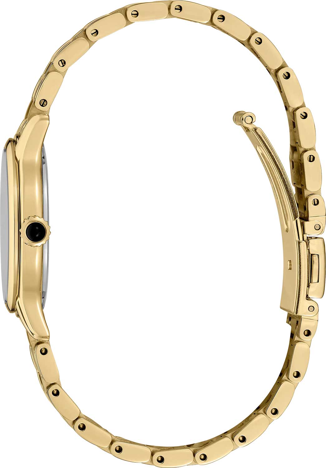 Женские японские часы Seiko Discover More SRZ552P1 c кварцевым механизмом с высокой точностью. Сапфировое стеклоСапфировое стеклоПрочный и надёжный материал из кристалла сапфира синтетического происхождения, характеризующийся особой твёрдостью и устойчивостью к царапинам и повреждениям., устойчивое к появлению царапин, обладающее высокой прозрачностью. Класс водозащиты: 50 метров, позволит плавать, нырять и заниматься другими водными видами спорта. Корпус и браслет часов изготовлен из стали с частичным PVDPVDУльтратонкое покрытие наносится в технике вакуумного напыления, сочетает в себе нитрид титана особой прочности со слоем золота или оксида хрома. Несёт в себе декоративную или защитную функцию. покрытием. Циферблат украшен кристаллами. Браслет с тройной раскладной застёжкойРаскладная застёжкаТакой тип застёжки используется только на браслетах из металла. Она никогда не раскрывается полностью, происходит разделение на 2 и более частей. Раскладывающая застёжка снизит вероятность потери часов к минимуму.. Seiko — это гармония изящного дизайна и технологичной надёжности, компактный и стильный выбор для повседневной классики.