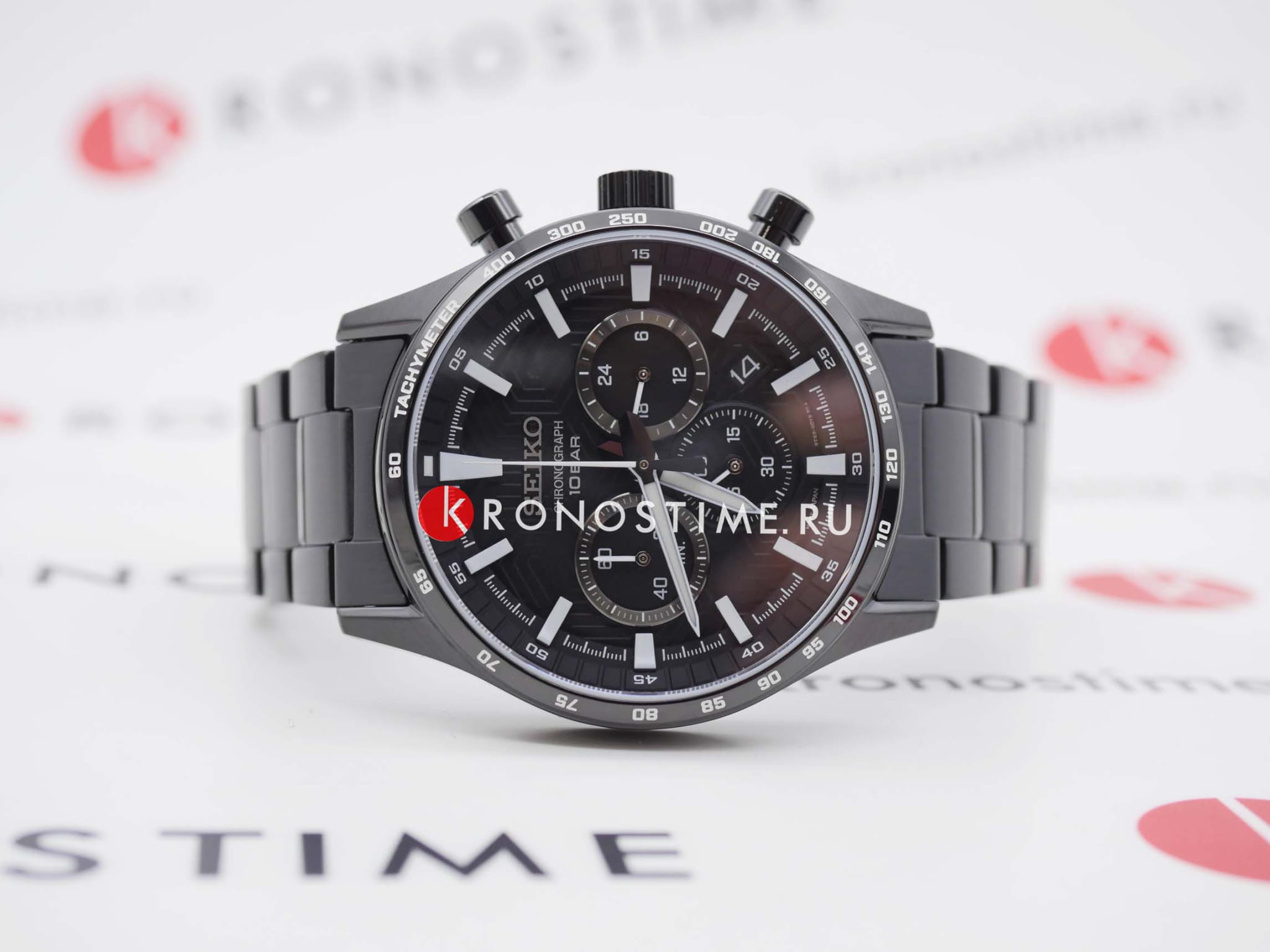 Мужские японские часы Seiko Conceptual Series Sports SSB415P1 c хронографомХронографФункция позволяет измерять отрезки времени с особой точностью: часы, минуты, секунды. Верным признаком хронографа является наличие на циферблате 3 дополнительных окошек-счётчиков., кварцевый механизм с высокой точностью. Сапфировое стеклоСапфировое стеклоПрочный и надёжный материал из кристалла сапфира синтетического происхождения, характеризующийся особой твёрдостью и устойчивостью к царапинам и повреждениям., устойчивое к появлению царапин, обладающее высокой прозрачностью. Класс водозащиты: 100 метров, позволит плавать, нырять и заниматься другими водными видами спорта. Корпус и браслет часов изготовлен из сталис PVD-покрытиемPVDУльтратонкое покрытие наносится в технике вакуумного напыления, сочетает в себе нитрид титана особой прочности со слоем золота или оксида хрома. Несёт в себе декоративную или защитную функцию.. Неподвижный безельБезельВнешний ободок, закрепляющий стекло. В спортивных часах так называется поворотное кольцо с делениями на циферблате, выполняет роль таймера – замеряет отрезки времени на шкале. Неподвижный безель – элемент декора. Однонаправленно вращающийся безель на дайверских часах позволяет фиксировать моменты погружения и выныривания на поверхность. со шкалой тахиметраТахиметрРазмеченная шкала, располагается на ободке или безеле часов. Тахиметр позволяет рассчитать скорость на определённом участке пути, расстояние измеряется в километрах или милях.. Стрелки и метки с люминесцентным покрытиемЛюминесцентное покрытиеПозволяет считывать показания времени в темноте. Производители наносят на стрелки, часовые индексы, безель или поверхность циферблата светонакопительный состав, дающий холодное свечение.. Браслет на раскладной застёжкеРаскладная застёжкаТакой тип застёжки используется только на браслетах из металла. Она никогда не раскрывается полностью, происходит разделение на 2 и более частей. Раскладывающая застёжка снизит вероятность потери часов к минимуму. с кнопками. СекундомерСекундомерСекундоме́р — прибор, способный измерять интервалы времени с точностью до долей секунды.. Окошко даты находится в положении между 4 и 5 часов.