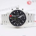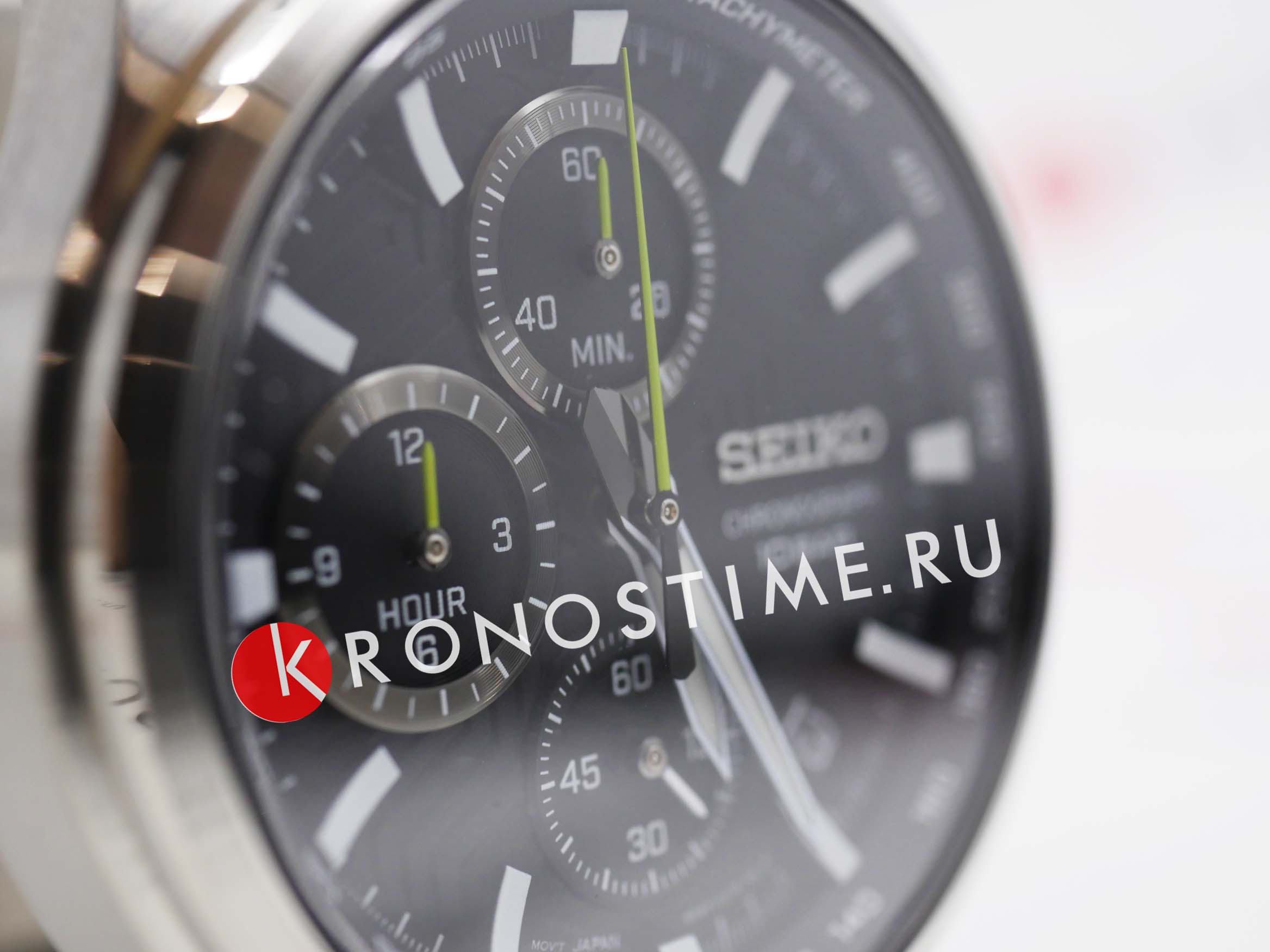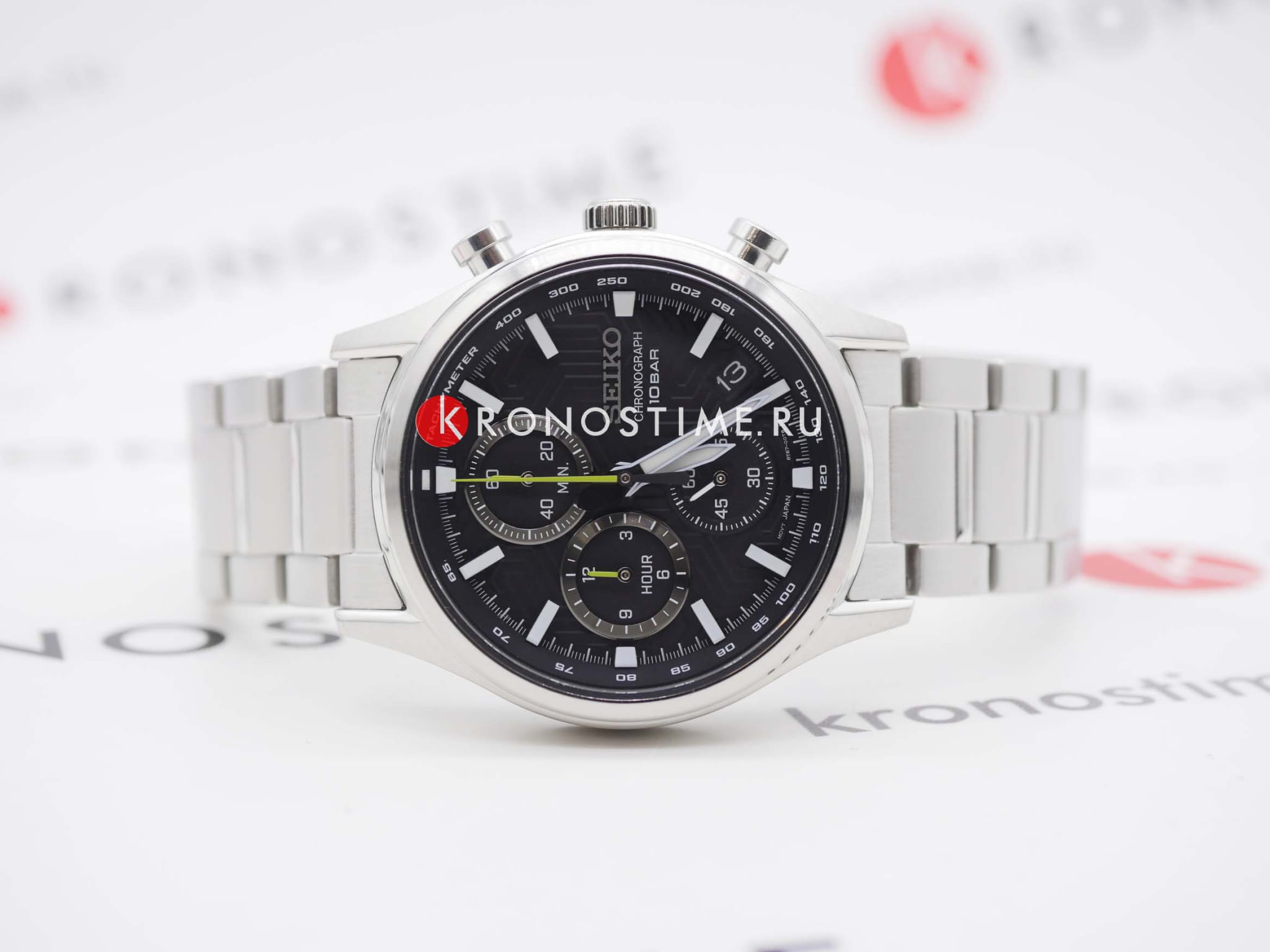 Мужские японские часы Seiko Discover More SSB419P1 c хронографомХронографФункция позволяет измерять отрезки времени с особой точностью: часы, минуты, секунды. Верным признаком хронографа является наличие на циферблате 3 дополнительных окошек-счётчиков., кварцевый механизм с высокой точностью. Сапфировое стеклоСапфировое стеклоПрочный и надёжный материал из кристалла сапфира синтетического происхождения, характеризующийся особой твёрдостью и устойчивостью к царапинам и повреждениям., устойчивое к появлению царапин, обладающее высокой прозрачностью. Класс водозащиты: 100 метров, позволит плавать, нырять и заниматься другими водными видами спорта. Корпус и браслет часов изготовлен из стали. Неподвижный безельБезельВнешний ободок, закрепляющий стекло. В спортивных часах так называется поворотное кольцо с делениями на циферблате, выполняет роль таймера – замеряет отрезки времени на шкале. Неподвижный безель – элемент декора. Однонаправленно вращающийся безель на дайверских часах позволяет фиксировать моменты погружения и выныривания на поверхность. со шкалой тахиметраТахиметрРазмеченная шкала, располагается на ободке или безеле часов. Тахиметр позволяет рассчитать скорость на определённом участке пути, расстояние измеряется в километрах или милях.. Стрелки и метки с люминесцентным покрытиемЛюминесцентное покрытиеПозволяет считывать показания времени в темноте. Производители наносят на стрелки, часовые индексы, безель или поверхность циферблата светонакопительный состав, дающий холодное свечение. LumiBrite. Браслет на раскладной застёжкеРаскладная застёжкаТакой тип застёжки используется только на браслетах из металла. Она никогда не раскрывается полностью, происходит разделение на 2 и более частей. Раскладывающая застёжка снизит вероятность потери часов к минимуму. с кнопками. СекундомерСекундомерСекундоме́р — прибор, способный измерять интервалы времени с точностью до долей секунды.. Окошко даты находится в положении между 4 и 5 часов.