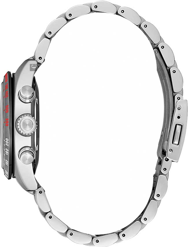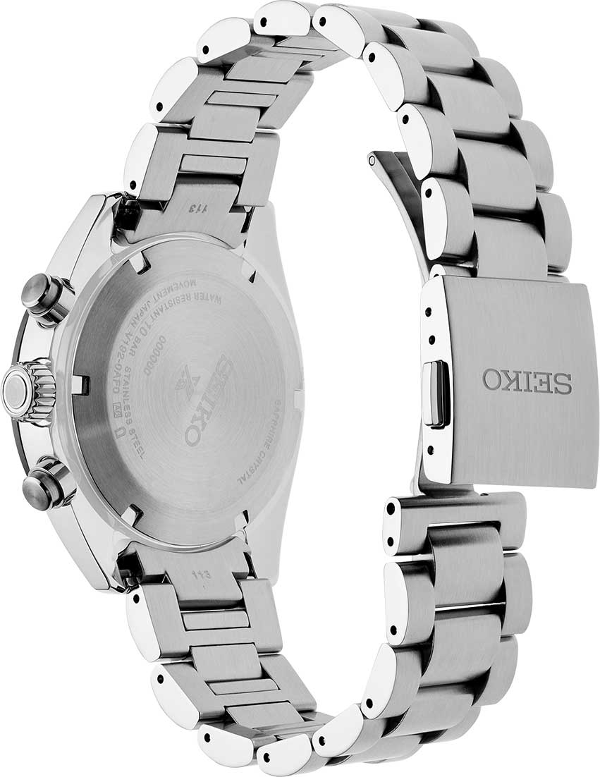 Seiko Prospex Speedtimer SSC815 — это элегантный солнечный хронограф, вдохновлённый первым хронографом Seiko, представленным на Олимпийских играх 1964 года в Токио. Модель сочетает в себе точность кварцевого механизма и экологичное питание от света благодаря технологии Tough SolarTough SolarТехнология основана на подзарядке аккумулятора от источника солнечного света, специальная панель улавливает солнечные лучи и преобразует их в энергию для работы часов. Достаточно пары минут нахождения на солнце для функционирования часов в течении суток., обеспечивая запас хода до 6 месяцев при полной зарядке. Также реализована функция предотвращения перезарядкиEOLПредставляет собой систему, уведомляющую владельца часов о необходимости замены элемента питания. За 2 недели до полного разряда батарейки секундная стрелка перестаёт ходить чётко и начинает перепрыгивать на 3-4 деления.. Часы оснащены калибром V192 с функцией отображения второго часового пояса в 12- и 24-часовом формате, а также хронографом с измерением времени до 60 минут с точностью до 1/5 секунды. Секундная стрелка вынесена на отдельный циферблат, что делает модель визуально сбалансированной и функциональной. На циферблате также присутствует тахиметрТахиметрРазмеченная шкала, располагается на ободке или безеле часов. Тахиметр позволяет рассчитать скорость на определённом участке пути, расстояние измеряется в километрах или милях. и ретроградный индикатор уровня заряда аккумулятора. Циферблат синего цвета дополнен штриховыми метками и стрелками с фирменным люминесцентным покрытиемЛюминесцентное покрытиеПозволяет считывать показания времени в темноте. Производители наносят на стрелки, часовые индексы, безель или поверхность циферблата светонакопительный состав, дающий холодное свечение. LumiBrite, обеспечивающим отличную читаемость даже в темноте. Защиту циферблата обеспечивает сапфировое стеклоСапфировое стеклоПрочный и надёжный материал из кристалла сапфира синтетического происхождения, характеризующийся особой твёрдостью и устойчивостью к царапинам и повреждениям. с выпуклой формой и антибликовым покрытием на внутренней поверхности. Корпус диаметром 39 мм изготовлен из стали с частичным PVD-покрытиемPVDУльтратонкое покрытие наносится в технике вакуумного напыления, сочетает в себе нитрид титана особой прочности со слоем золота или оксида хрома. Несёт в себе декоративную или защитную функцию., а задняя крышка — завинчивающаяся, с выгравированным серийным номером. Часы водонепроницаемы до 100 метров (), что позволяет использовать их при плавании и других водных активностях. Браслет выполнен из стали и оснащён трёхсгибной раскладной застёжкойРаскладная застёжкаТакой тип застёжки используется только на браслетах из металла. Она никогда не раскрывается полностью, происходит разделение на 2 и более частей. Раскладывающая застёжка снизит вероятность потери часов к минимуму. с кнопочным механизмом, обеспечивающей комфорт и уверенную фиксацию на запястье. Ширина браслета составляет 22 мм, что делает его совместимым со стандартными размерами. Эти часы станут универсальным аксессуаром для тех, кто ценит сочетание технологичности, истории и эстетики — идеальный выбор как для повседневной носки, так и для особых случаев.