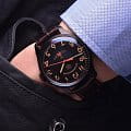 Лимитированные мужские российские механические часы с минеральным стекломМинеральное стеклоМинеральное стекло представляет собой искусственно выращенный минерал кварца. Такое стекло отличается особой устойчивостью к повреждениям и царапинам. Уступает по некоторым качествам сапфировому стеклу. Штурманские Гагарин Винтаж 2609/3714129, механический механизм (автоматический калибр) с высокой точностью. Лимитированная серия - 3000 экземпляров. Класс водозащиты: 30 метров, позволит защитить корпус от случайных брызг или капель дождя. Корпус часов изготовлен из титана с PVD-покрытиемPVDУльтратонкое покрытие наносится в технике вакуумного напыления, сочетает в себе нитрид титана особой прочности со слоем золота или оксида хрома. Несёт в себе декоративную или защитную функцию.. Кожаный ремешок на стандартной застёжке. Стрелки и метки с люминесцентным покрытиемЛюминесцентное покрытиеПозволяет считывать показания времени в темноте. Производители наносят на стрелки, часовые индексы, безель или поверхность циферблата светонакопительный состав, дающий холодное свечение.. Лаконичный циферблат не пугает обилием шкал и цифр, при этом отлично читается даже в темноте. Работу часов обеспечивает отлично зарекомендовавший себя механизм Полет 2609 с запасом хода на 38 часов. На задней стороне модели расположен барельеф с изображением Юрия Гагарина под прозрачной крышкой.