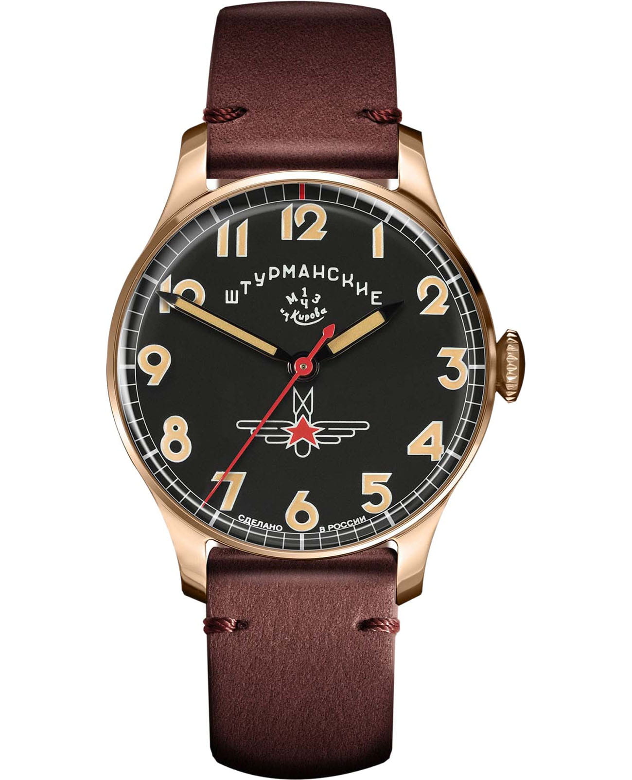Мужские российские механические часы Штурманские Гагарин Наследие 2609/3759471, механический механизм (автоматический калибр) с высокой точностью. Минеральное стеклоМинеральное стеклоМинеральное стекло представляет собой искусственно выращенный минерал кварца. Такое стекло отличается особой устойчивостью к повреждениям и царапинам. Уступает по некоторым качествам сапфировому стеклу. устойчивое к мелким механическим повреждениям. Класс водозащиты: 50 метров, позволит защитить корпус от случайных брызг или капель дождя. Корпус часов изготовлен из стали с PVD-покрытиемPVDУльтратонкое покрытие наносится в технике вакуумного напыления, сочетает в себе нитрид титана особой прочности со слоем золота или оксида хрома. Несёт в себе декоративную или защитную функцию.. Кожаный ремешок на стандартной застёжке. Стрелки и метки с люминесцентным покрытиемЛюминесцентное покрытиеПозволяет считывать показания времени в темноте. Производители наносят на стрелки, часовые индексы, безель или поверхность циферблата светонакопительный состав, дающий холодное свечение.. Чёткая, читаемая минутная шкала уходит за приделы видимой области циферблата, подчёркивая изящность ободка корпуса. Оцифровка циферблата – отличительная особенность данной модели, её дизайн не изменился с самой первый, гагаринской серии. Заводная головка конической формы с удобной насечкой повторяет дизайн оригинальной модели. Лимитированная серия: 2000 шт.