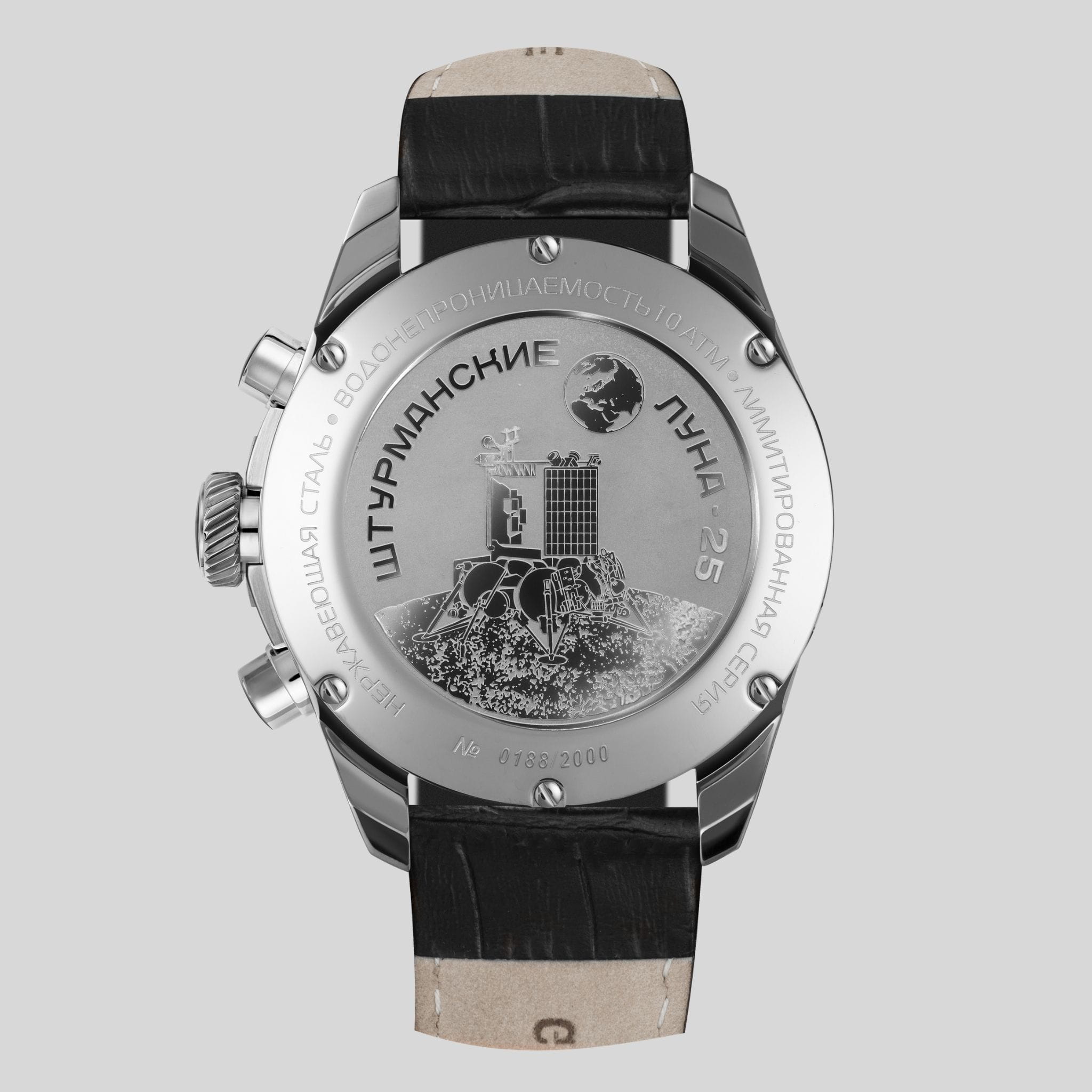 Мужские российские кварцевые часы Штурманские 6S20/4782410, Часы Штурманские из коллекции Луна 25 – это уникальный аксессуар, созданный для настоящих ценителей качественных и стильных часов. Модель воплощает в себе сочетание элегантного дизайна и надежной функциональности. Корпус часов изготовлен из нержавеющей стали. БезельБезельВнешний ободок, закрепляющий стекло. В спортивных часах так называется поворотное кольцо с делениями на циферблате, выполняет роль таймера – замеряет отрезки времени на шкале. Неподвижный безель – элемент декора. Однонаправленно вращающийся безель на дайверских часах позволяет фиксировать моменты погружения и выныривания на поверхность. с PVD-покрытиемPVDУльтратонкое покрытие наносится в технике вакуумного напыления, сочетает в себе нитрид титана особой прочности со слоем золота или оксида хрома. Несёт в себе декоративную или защитную функцию.. Минеральное стеклоМинеральное стеклоМинеральное стекло представляет собой искусственно выращенный минерал кварца. Такое стекло отличается особой устойчивостью к повреждениям и царапинам. Уступает по некоторым качествам сапфировому стеклу. защищает циферблат от царапин и повреждений, сохраняя его безупречный внешний вид на протяжении долгого времени. Стрелки часов, выполненные в классическом стиле, имеют люминесцентное покрытие, что обеспечивает удобное считывание времени в условиях низкой освещенности. Класс водозащиты 50 метров, позволит защитить корпус от случайных брызг или капель дождя. Задняя крышка украшена изображением посадочного аппарата Луна-25 на поверхности Луны и крепится на 4-х винтах. Окошко даты находится в положении 6 часов.