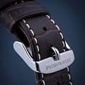 Мужские российские механические часы-хронографХронографФункция позволяет измерять отрезки времени с особой точностью: часы, минуты, секунды. Верным признаком хронографа является наличие на циферблате 3 дополнительных окошек-счётчиков. с секундомеромСекундомерСекундоме́р — прибор, способный измерять интервалы времени с точностью до долей секунды. Штурманские Открытый Космос NE86/1855018, механический механизм (автоматический калибр) с высокой точностью. Лимитированная серия - 500 экземпляров, посвящена первому выходу человека в открытый космос. Индивидуальная нумерация. Сапфировое стеклоСапфировое стеклоПрочный и надёжный материал из кристалла сапфира синтетического происхождения, характеризующийся особой твёрдостью и устойчивостью к царапинам и повреждениям. устойчивое к появлению царапин, обладающее высокой прозрачностью. Класс водозащиты: 50 метров, позволит защитить корпус от случайных брызг или капель дождя. Корпус часов изготовлен из стали. Кожаный ремешок на стандартной застёжке. Стрелки и метки с люминесцентным покрытиемЛюминесцентное покрытиеПозволяет считывать показания времени в темноте. Производители наносят на стрелки, часовые индексы, безель или поверхность циферблата светонакопительный состав, дающий холодное свечение.. Стальной корпус надежно защищает от повреждений механический японский калибр Seiko NE86 на 34 камня с запасом хода 42 часа. Подзавод у часов автоматический.