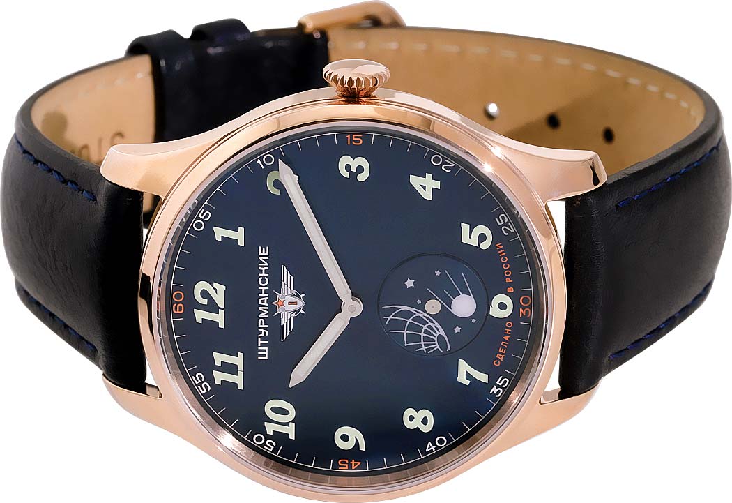 Штурманские мужские российские кварцевые часы с минеральным стекломМинеральное стеклоМинеральное стекло представляет собой искусственно выращенный минерал кварца. Такое стекло отличается особой устойчивостью к повреждениям и царапинам. Уступает по некоторым качествам сапфировому стеклу. Штурманские Наследие Спутник Малая Секунда VD78/6819421, кварцевый механизм с высокой точностью. Класс водозащиты: 50 метров, позволит защитить корпус от случайных брызг или капель дождя. Корпус часов изготовлен из стали с PVD-покрытиемPVDУльтратонкое покрытие наносится в технике вакуумного напыления, сочетает в себе нитрид титана особой прочности со слоем золота или оксида хрома. Несёт в себе декоративную или защитную функцию.. Кожаный ремешок на стандартной застёжке. Стрелки и метки с люминесцентным покрытиемЛюминесцентное покрытиеПозволяет считывать показания времени в темноте. Производители наносят на стрелки, часовые индексы, безель или поверхность циферблата светонакопительный состав, дающий холодное свечение.. Надежный кварцевый механизм VD78 Seiko работает практически без погрешностей (до 10-20 секунд в месяц) и редко требует замены батареи. В окошке, стилизованном под первый искусственный спутник Земли, отображаются текущие секунды.