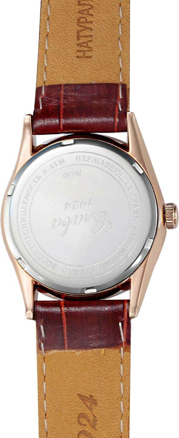 Российские механические наручные часы Слава 1493931/300-8215, которые станут идеальным аксессуаром для повседневного ношения. Эти часы сочетают в себе элегантность и практичность, предлагая безупречный стиль и надежность. Оснащенные механизмом Miyota 8215 с автоподзаводом, они обеспечивают точность и долговечность, поддерживая запас хода до 42 часов. Стальной корпус с IP-покрытиемIP-покрытиеМетод ионного напыления. Демонстрирует повышенную устойчивость к истиранию, окислению и химическим веществам. Под воздействием высокого давления и температуры около 1500°C молекулы металла надёжно соединяются с частицами корпуса часов. и сапфировым стекломСапфировое стеклоПрочный и надёжный материал из кристалла сапфира синтетического происхождения, характеризующийся особой твёрдостью и устойчивостью к царапинам и повреждениям. защищает белый циферблат с римскими цифрами. На циферблате изображены герб Российской Федерации и автограф В.В. Путина. Часы также имеют календарь с окошком даты на 3 часах и водозащиту до 50WR, что делает их надежными в различных условиях. Текстурированный кожаный ремешок с классической застежкой завершает этот изысканный образ.