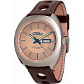 Класс водозащиты часов составляет 100 метров, позволит плавать, нырять и заниматься другими водными видами спорта. Эти часы идеально подойдут для повседневного использования, сочетая в себе стиль, надежность и функциональность. Стрелки и метки с люминесцентным покрытиемЛюминесцентное покрытиеПозволяет считывать показания времени в темноте. Производители наносят на стрелки, часовые индексы, безель или поверхность циферблата светонакопительный состав, дающий холодное свечение.. Окошки дня недели и даты находятся в положении 3 часа.