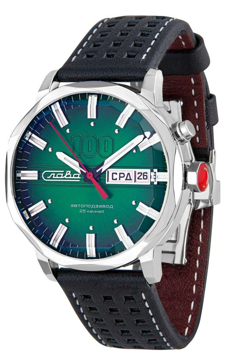 Российские наручные часы Слава Эра 9020580/300-2427 — элегантное сочетание традиций и современных технологий. Эти часы оснащены механическим механизмом с автоподзаводом и калибром Слава 2427, который обеспечивает точность и надежность. Корпус выполнен из нержавеющей стали, что придаёт часам прочность и долговечность, а зеленый циферблат с накладными метками добавляет изысканности. Стрелки и метки с люминесцентным покрытиемЛюминесцентное покрытиеПозволяет считывать показания времени в темноте. Производители наносят на стрелки, часовые индексы, безель или поверхность циферблата светонакопительный состав, дающий холодное свечение., что облегчает чтение времени даже в условиях слабого освещения. Часы оборудованы функцией календаря, отображающего дату и день недели, с удобным расположением в позиции 3 часа. Сапфировое стеклоСапфировое стеклоПрочный и надёжный материал из кристалла сапфира синтетического происхождения, характеризующийся особой твёрдостью и устойчивостью к царапинам и повреждениям., которое еще и граненое, защищает циферблат от царапин. Водозащита уровня 100WR позволяет использовать часы в различных условиях. Прозрачная задняя крышка позволяет наблюдать за работой механизма, а заводная головка с красной эмалью и фирменной буквой «С» добавляет уникальности. Перфорированный кожаный ремешок, прошитый белой нитью, и застежка «бабочка»Застёжка "бабочка"Такой вид застёжки дополняется предохранителями, помогающими избежать случайного раскрытия браслета. Обладают изящным исполнением. обеспечивают комфорт и стиль. Лимитированная серия ограничена 500 экземплярами, что подчеркивает их уникальность. Эти часы станут надежным спутником в вашей повседневной жизни.