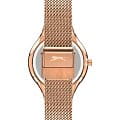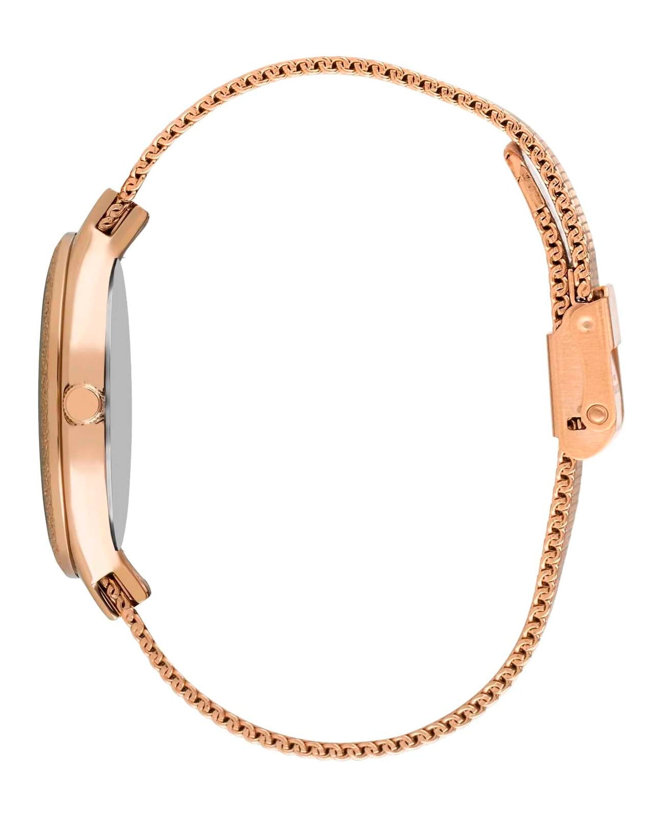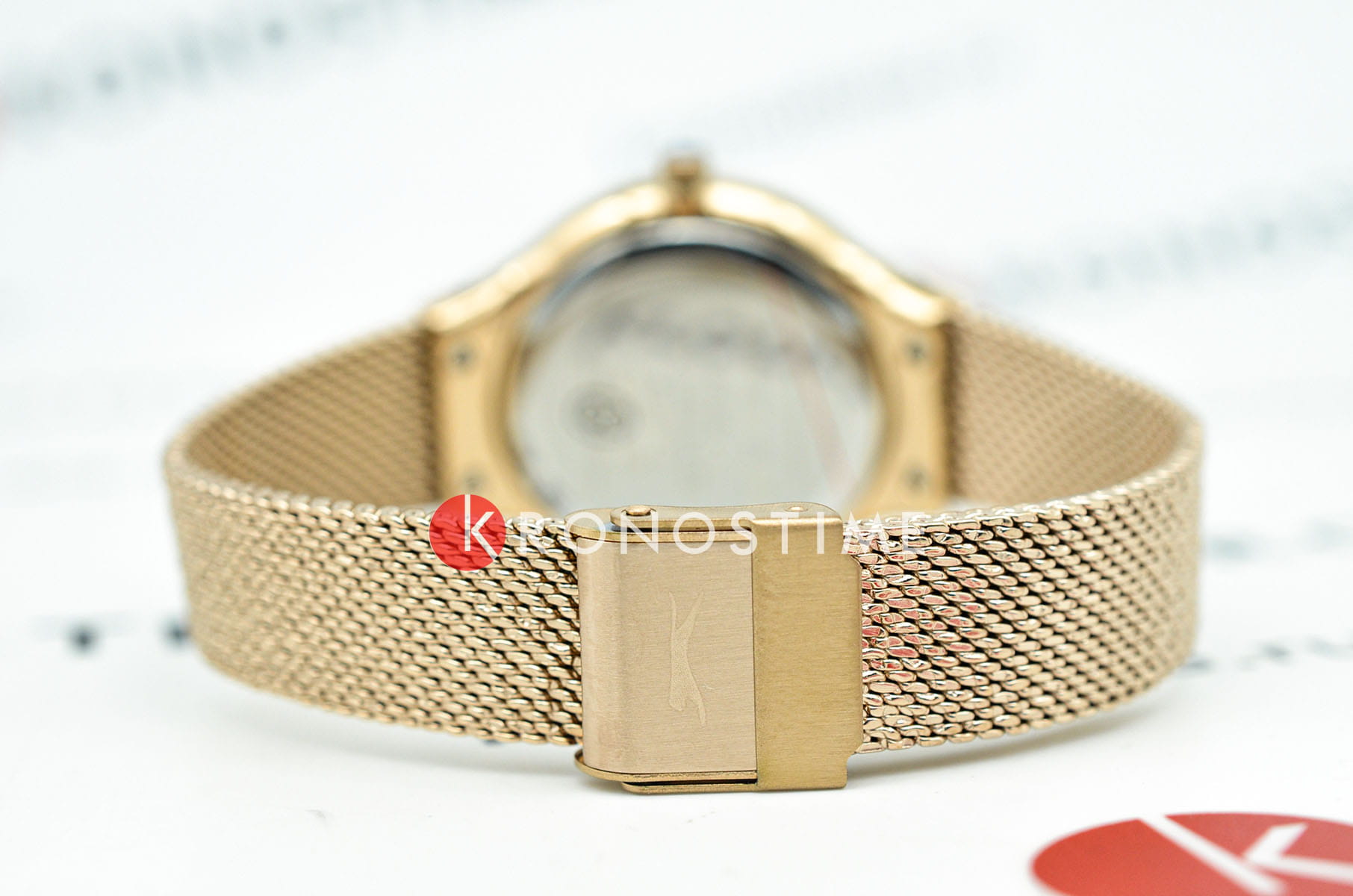 Женские наручные часы Slazenger SL.09.2015.3.02 сочетают в себе элегантный дизайн и надежность современных технологий. Модель обладает круглым корпусом диаметром 35 мм, изготовленным из суперметалла с IP-покрытиемIP-покрытиеМетод ионного напыления. Демонстрирует повышенную устойчивость к истиранию, окислению и химическим веществам. Под воздействием высокого давления и температуры около 1500°C молекулы металла надёжно соединяются с частицами корпуса часов. розового золота, что обеспечивает высокую устойчивость к внешним воздействиям. Браслет миланского плетения из суперметалла с IP-покрытиемIP-покрытиеМетод ионного напыления. Демонстрирует повышенную устойчивость к истиранию, окислению и химическим веществам. Под воздействием высокого давления и температуры около 1500°C молекулы металла надёжно соединяются с частицами корпуса часов. на раскладном замкеРаскладной замокДанный вариант застежки используется только на часах с металлическим браслетом. Отличительная особенность такого крепления в том, что длина браслета становится универсальной и вы можете самостоятельно отрегулировать нужный вам размер – застежка просто двигается по браслету часов., что гарантирует комфортное ношение и стильный внешний вид. Циферблат украшен индексами и кристаллами, оснащен тремя стрелками для показания часов, минут и секунд. Для защиты применяется минеральное стеклоМинеральное стеклоМинеральное стекло представляет собой искусственно выращенный минерал кварца. Такое стекло отличается особой устойчивостью к повреждениям и царапинам. Уступает по некоторым качествам сапфировому стеклу., обеспечивающее прочную защиту от царапин. Часы работают на японском кварцевом механизме, что гарантирует точное время без необходимости подзаводки. Водонепроницаемость часов достигает 5 атмосфер (50 метров), что позволяет использовать их при контакте с водой, например, во время мытья рук или попадания брызг, однако не рекомендуется для плавания.
