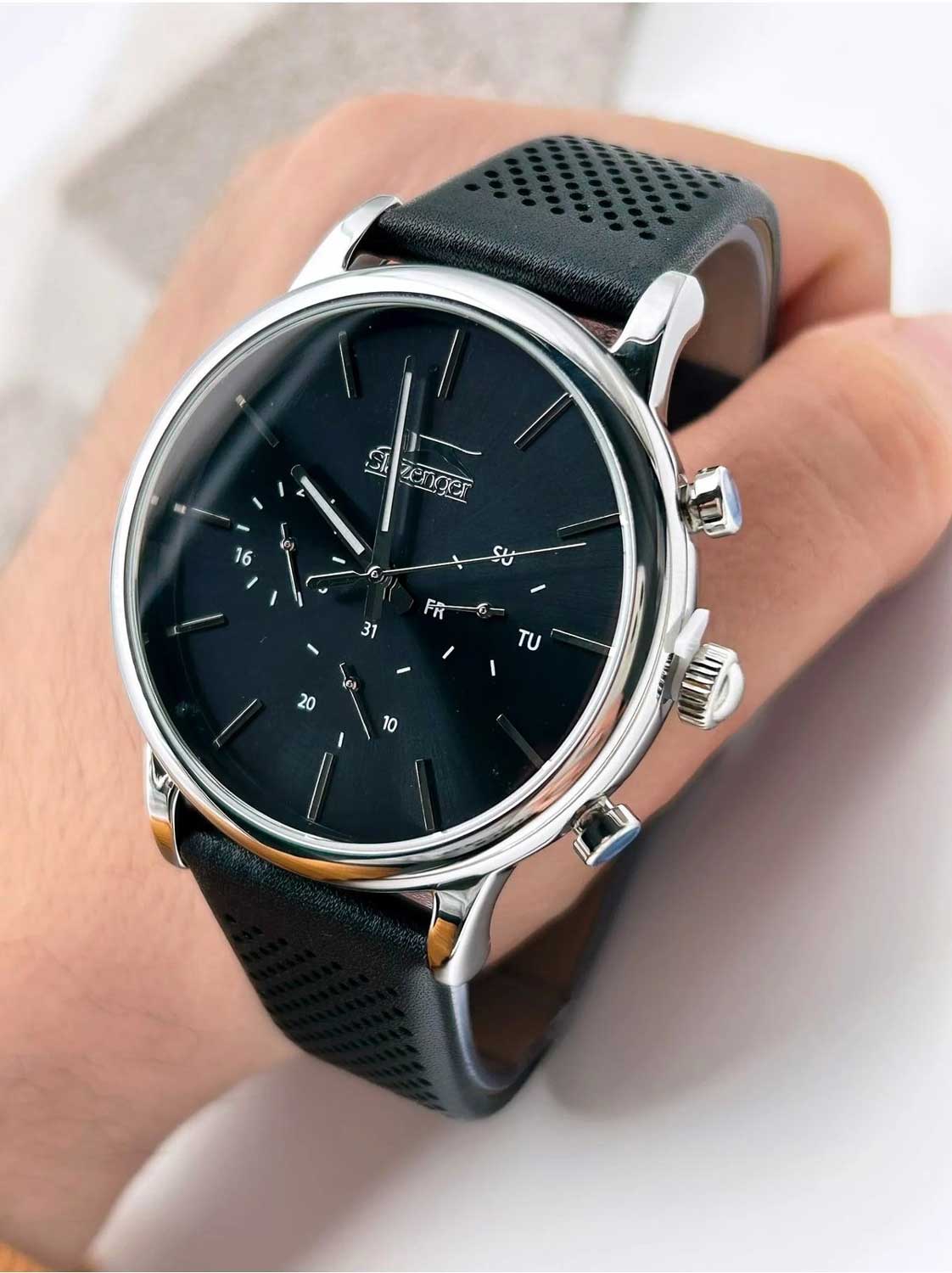 Slazenger SL.09.2030.2.01 – стильные мужские часы, сочетающие современный дизайн и функциональность. Корпус, выполненный из суперметалла, обеспечивает прочность и долговечность, а циферблат придаёт модели элегантный вид; он защищён минеральным стекломМинеральное стеклоМинеральное стекло представляет собой искусственно выращенный минерал кварца. Такое стекло отличается особой устойчивостью к повреждениям и царапинам. Уступает по некоторым качествам сапфировому стеклу., устойчивым к царапинам, что гарантирует сохранение идеального внешнего вида при активном использовании. Часы оснащены точным кварцевым механизмом, обеспечивающим стабильное отображение времени. Ремешок из натуральной кожи дополнен стандартной классической застёжкой, которая обеспечивает комфортное ношение и надёжную фиксацию на запястье. Водозащита до 50 метров (5 ATM) делает модель отличным выбором для повседневного использования, защищая часы от случайных брызг и дождя.