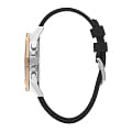 Мужские часы Slazenger SL.09.2090.2.04 представляют собой идеальное сочетание стиля и функциональности. Черный циферблат, обрамленный корпусом из суперметалла диаметром 46 мм и золотистым безелемБезельВнешний ободок, закрепляющий стекло. В спортивных часах так называется поворотное кольцо с делениями на циферблате, выполняет роль таймера – замеряет отрезки времени на шкале. Неподвижный безель – элемент декора. Однонаправленно вращающийся безель на дайверских часах позволяет фиксировать моменты погружения и выныривания на поверхность. также из суперметалла, но с IP-покрытиемIP-покрытиеМетод ионного напыления. Демонстрирует повышенную устойчивость к истиранию, окислению и химическим веществам. Под воздействием высокого давления и температуры около 1500°C молекулы металла надёжно соединяются с частицами корпуса часов., привлекает внимание своим современным дизайном. Кварцевый механизм обеспечивает точность хода. Силиконовый браслет черного цвета добавляет комфорта и надежности, идеально сочетаясь с цветом циферблата. Минеральное стеклоМинеральное стеклоМинеральное стекло представляет собой искусственно выращенный минерал кварца. Такое стекло отличается особой устойчивостью к повреждениям и царапинам. Уступает по некоторым качествам сапфировому стеклу. защищает часы от царапин, а люминесцентное покрытиеЛюминесцентное покрытиеПозволяет считывать показания времени в темноте. Производители наносят на стрелки, часовые индексы, безель или поверхность циферблата светонакопительный состав, дающий холодное свечение. на стрелках и метках обеспечивает видимость в темноте. Функциональность часов дополнена вторым часовым поясомВторой часовой поясФункция, позволяющая отображать время двух часовых поясов одновременно., 24-часовым указателем времени, календарем даты в районе отметки «4:30» и дня недели. А водозащита до 5 ATM позволяет использовать часы в различных условиях.