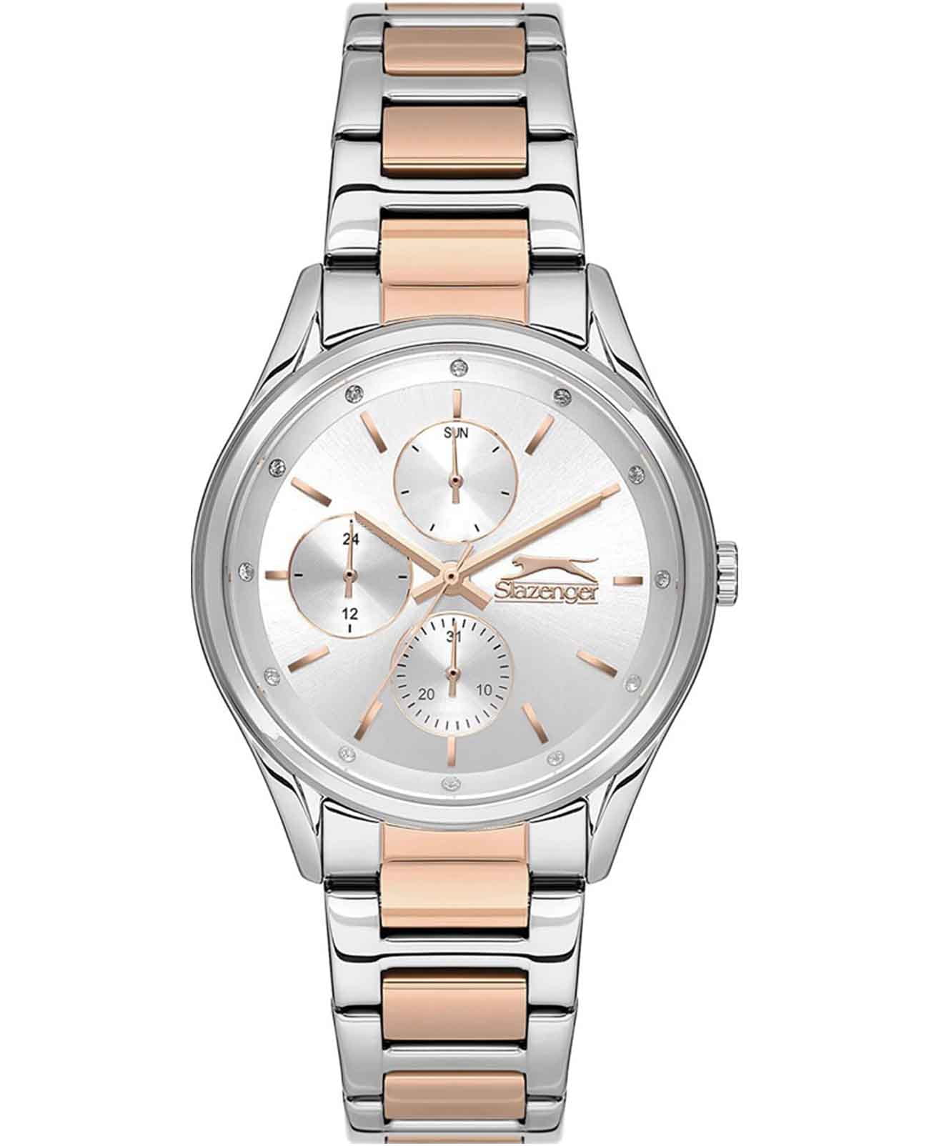 Часы Slazenger SL.09.2229.4.02 — это стильная и элегантная модель, созданная для современных женщин, ценящих изысканный дизайн и функциональность. Корпус выполнен из прочного металла серебристого цвета, что придает аксессуару особую утонченность. Циферблат украшен мерцающими кристаллами, а также оснащён дополнительными малыми циферблатами, которые отображают дату, день недели и время в 24-часовом формате. Минеральное стеклоМинеральное стеклоМинеральное стекло представляет собой искусственно выращенный минерал кварца. Такое стекло отличается особой устойчивостью к повреждениям и царапинам. Уступает по некоторым качествам сапфировому стеклу. надежно защищает часы от царапин, а водозащита уровня WR 30 позволяет не беспокоиться о случайном попадании влаги. Металлический браслет с частичным розово-золотистым IP-покрытиемIP-покрытиеМетод ионного напыления. Демонстрирует повышенную устойчивость к истиранию, окислению и химическим веществам. Под воздействием высокого давления и температуры около 1500°C молекулы металла надёжно соединяются с частицами корпуса часов. снабжён удобной раскладной застёжкойРаскладная застёжкаТакой тип застёжки используется только на браслетах из металла. Она никогда не раскрывается полностью, происходит разделение на 2 и более частей. Раскладывающая застёжка снизит вероятность потери часов к минимуму.. Диаметр корпуса составляет 36 мм, толщина — 9 мм, а вес — 82 грамма, что обеспечивает комфортное ношение в течение всего дня. Часы оснащены кварцевым механизмом.