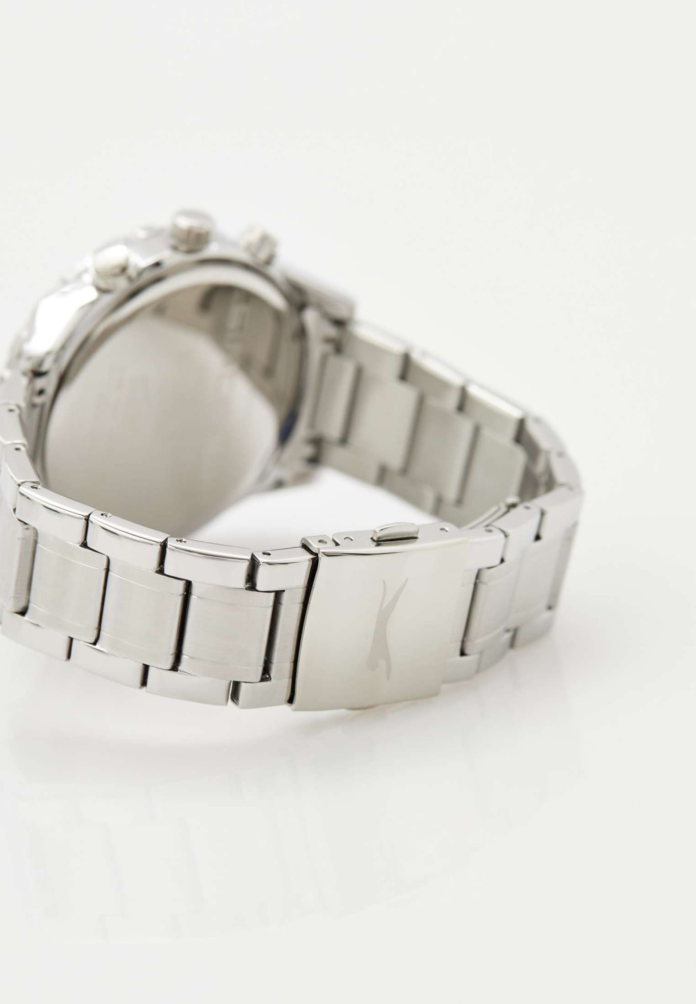Часы Slazenger SL.09.2236.2.03 — это стильная и надежная модель, которая станет отличным выбором для активного современного мужчины. Крупный корпус диаметром 46 мм выполнен из прочного металла, а серебристый металлический браслет оснащён удобной раскладной застёжкойРаскладная застёжкаТакой тип застёжки используется только на браслетах из металла. Она никогда не раскрывается полностью, происходит разделение на 2 и более частей. Раскладывающая застёжка снизит вероятность потери часов к минимуму., что обеспечивает комфорт при повседневном ношении. На безельБезельВнешний ободок, закрепляющий стекло. В спортивных часах так называется поворотное кольцо с делениями на циферблате, выполняет роль таймера – замеряет отрезки времени на шкале. Неподвижный безель – элемент декора. Однонаправленно вращающийся безель на дайверских часах позволяет фиксировать моменты погружения и выныривания на поверхность. нанесено черное и зеленое IP-покрытиеIP-покрытиеМетод ионного напыления. Демонстрирует повышенную устойчивость к истиранию, окислению и химическим веществам. Под воздействием высокого давления и температуры около 1500°C молекулы металла надёжно соединяются с частицами корпуса часов.. Минеральное стеклоМинеральное стеклоМинеральное стекло представляет собой искусственно выращенный минерал кварца. Такое стекло отличается особой устойчивостью к повреждениям и царапинам. Уступает по некоторым качествам сапфировому стеклу. защищает текстурированный зеленый циферблат от случайных царапин, а водозащита уровня WR 50 позволяет не переживать о попадании влаги при контакте с водой. На циферблате расположены дополнительные малые циферблаты с отображением даты, дня недели и времени в 24-часовом формате, что делает использование часов максимально функциональным. Для удобства использования в темное время суток предусмотрено люминесцентное покрытиеЛюминесцентное покрытиеПозволяет считывать показания времени в темноте. Производители наносят на стрелки, часовые индексы, безель или поверхность циферблата светонакопительный состав, дающий холодное свечение. стрелок. Толщина корпуса составляет 13 мм, вес часов — 152 грамма.