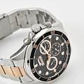 Мужские кварцевые часы Slazenger SL.09.2309.2.04 — это выразительный и функциональный аксессуар, сочетающий прочность, стиль и насыщенную комплектацию. Браслет выполнен из суперметалла с IP-покрытиемIP-покрытиеМетод ионного напыления. Демонстрирует повышенную устойчивость к истиранию, окислению и химическим веществам. Под воздействием высокого давления и температуры около 1500°C молекулы металла надёжно соединяются с частицами корпуса часов., защищён минеральным стекломМинеральное стеклоМинеральное стекло представляет собой искусственно выращенный минерал кварца. Такое стекло отличается особой устойчивостью к повреждениям и царапинам. Уступает по некоторым качествам сапфировому стеклу.. Циферблат чёрного цвета оформлен с вынесенными малыми циферблатами для индикации дня недели, даты и времени в 24-часовом формате. Стрелки и метки оснащены люминесцентным покрытиемЛюминесцентное покрытиеПозволяет считывать показания времени в темноте. Производители наносят на стрелки, часовые индексы, безель или поверхность циферблата светонакопительный состав, дающий холодное свечение., обеспечивающим хорошую читаемость в темноте. Заводная головка снабжена защитой, а задняя крышка — завинчивающаяся, что повышает надёжность конструкции. Браслет комбинированного цвета фиксируется на раскладной застёжкеРаскладная застёжкаТакой тип застёжки используется только на браслетах из металла. Она никогда не раскрывается полностью, происходит разделение на 2 и более частей. Раскладывающая застёжка снизит вероятность потери часов к минимуму., обеспечивая удобство и безопасность ношения. Водонепроницаемость 50 м позволяет использовать часы в повседневных условиях, защищая от случайных брызг и капель дождя. Модель подчёркивает индивидуальность владельца и идеально подходит как для повседневного, так и для делового образа.