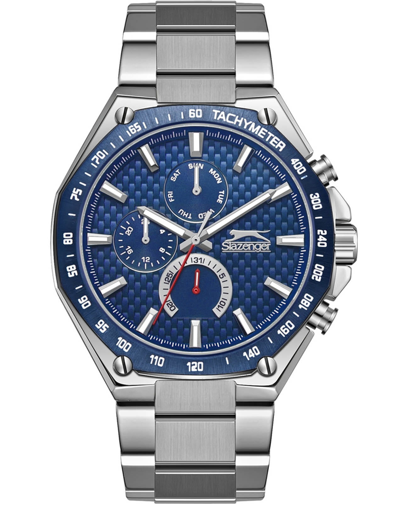 Мужские кварцевые часы Slazenger SL.09.2325.2.02 — это выразительный и функциональный аксессуар, сочетающий стиль, прочность и насыщенную комплектацию. Корпус и браслет выполнены из суперметалла, а циферблат оформлен в синих тонах. Циферблат защищён минеральным стекломМинеральное стеклоМинеральное стекло представляет собой искусственно выращенный минерал кварца. Такое стекло отличается особой устойчивостью к повреждениям и царапинам. Уступает по некоторым качествам сапфировому стеклу. и дополнен вынесенными малыми циферблатами для индикации дня недели, даты и времени в 24-часовом формате. БезельБезельВнешний ободок, закрепляющий стекло. В спортивных часах так называется поворотное кольцо с делениями на циферблате, выполняет роль таймера – замеряет отрезки времени на шкале. Неподвижный безель – элемент декора. Однонаправленно вращающийся безель на дайверских часах позволяет фиксировать моменты погружения и выныривания на поверхность. с IP-покрытиемIP-покрытиеМетод ионного напыления. Демонстрирует повышенную устойчивость к истиранию, окислению и химическим веществам. Под воздействием высокого давления и температуры около 1500°C молекулы металла надёжно соединяются с частицами корпуса часов. дополнен тахиметромТахиметрРазмеченная шкала, располагается на ободке или безеле часов. Тахиметр позволяет рассчитать скорость на определённом участке пути, расстояние измеряется в километрах или милях.. Стрелки и метки оснащены люминесцентным покрытиемЛюминесцентное покрытиеПозволяет считывать показания времени в темноте. Производители наносят на стрелки, часовые индексы, безель или поверхность циферблата светонакопительный состав, дающий холодное свечение., обеспечивающим хорошую читаемость в темноте. Браслет из суперметалла фиксируется на раскладной застёжкеРаскладная застёжкаТакой тип застёжки используется только на браслетах из металла. Она никогда не раскрывается полностью, происходит разделение на 2 и более частей. Раскладывающая застёжка снизит вероятность потери часов к минимуму., обеспечивая удобство и безопасность ношения. Водонепроницаемость 50 м позволяет использовать часы в повседневных условиях, защищая от случайных брызг и капель дождя. Модель подчёркивает индивидуальность владельца и идеально подходит как для повседневного, так и для делового образа.