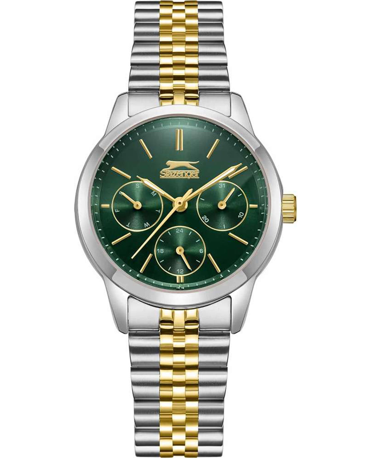 Женские элегантные наручные часы Slazenger SL.09.2336.4.04 сочетают в себе современный стиль и функциональность. Корпус выполнен из суперметалла , придающий модели дополнительную прочность и элегантный внешний вид. Изысканный циферблат защищён минеральным стекломМинеральное стеклоМинеральное стекло представляет собой искусственно выращенный минерал кварца. Такое стекло отличается особой устойчивостью к повреждениям и царапинам. Уступает по некоторым качествам сапфировому стеклу., устойчивым к царапинам и повреждениям. Водонепроницаемость 3 АТМ позволяет использовать часы в повседневных условиях — при мытье рук или под лёгким дождём. Часы оснащены дополнительными циферблатами, отображающими дату, день недели и 24-часовой формат времени, что добавляет практичности в повседневном использовании. Браслет из суперметалла с IP-покрытиемIP-покрытиеМетод ионного напыления. Демонстрирует повышенную устойчивость к истиранию, окислению и химическим веществам. Под воздействием высокого давления и температуры около 1500°C молекулы металла надёжно соединяются с частицами корпуса часов. и с раскладной застёжкойРаскладная застёжкаТакой тип застёжки используется только на браслетах из металла. Она никогда не раскрывается полностью, происходит разделение на 2 и более частей. Раскладывающая застёжка снизит вероятность потери часов к минимуму. обеспечивает надёжную фиксацию и комфорт при ношении. Эта модель идеально подходит для женщин, ценящих стиль, функциональность и надёжность в одном аксессуаре.