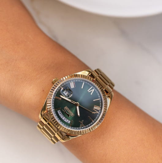 Женские элегантные наручные часы Slazenger SL.09.2338.4.05 сочетают в себе современный стиль и функциональность. Стильный корпус выполнен из суперметалла с IP-покрытиемIP-покрытиеМетод ионного напыления. Демонстрирует повышенную устойчивость к истиранию, окислению и химическим веществам. Под воздействием высокого давления и температуры около 1500°C молекулы металла надёжно соединяются с частицами корпуса часов., придающий модели дополнительную прочность и элегантный внешний вид. Изысканный циферблат защищён минеральным стекломМинеральное стеклоМинеральное стекло представляет собой искусственно выращенный минерал кварца. Такое стекло отличается особой устойчивостью к повреждениям и царапинам. Уступает по некоторым качествам сапфировому стеклу., устойчивым к царапинам и повреждениям. Водонепроницаемость 3 АТМ позволяет использовать часы в повседневных условиях — при мытье рук или под лёгким дождём. Браслет из суперметалла с IP-покрытиемIP-покрытиеМетод ионного напыления. Демонстрирует повышенную устойчивость к истиранию, окислению и химическим веществам. Под воздействием высокого давления и температуры около 1500°C молекулы металла надёжно соединяются с частицами корпуса часов. и с раскладной застёжкойРаскладная застёжкаТакой тип застёжки используется только на браслетах из металла. Она никогда не раскрывается полностью, происходит разделение на 2 и более частей. Раскладывающая застёжка снизит вероятность потери часов к минимуму., обеспечивающий надёжную фиксацию и комфорт при ношении. Окошко даты находится в положении 3 часа. Cтрелки покрыты люминесцентным покрытиемЛюминесцентное покрытиеПозволяет считывать показания времени в темноте. Производители наносят на стрелки, часовые индексы, безель или поверхность циферблата светонакопительный состав, дающий холодное свечение. для читаемости в условиях недостаточного освещения. Эта модель идеально подходит для женщин, ценящих стиль, функциональность и надёжность в одном аксессуаре.