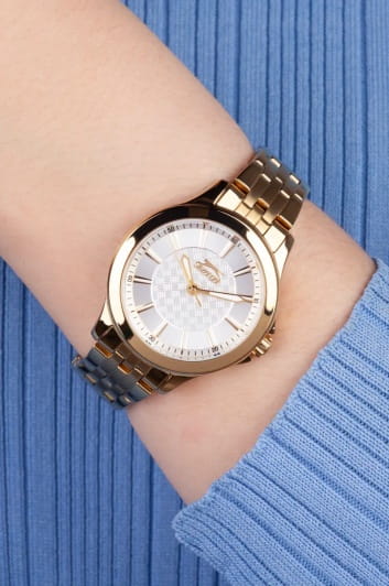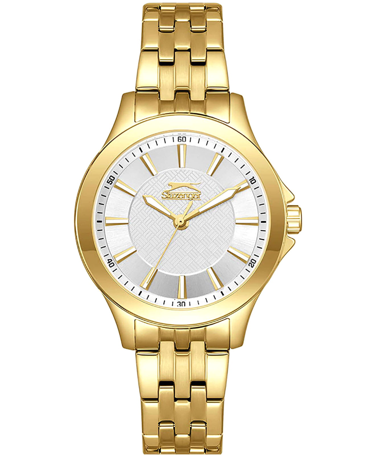 Женские кварцевые часы Slazenger SL.09.2349.3.06 – это сочетание элегантности, современного стиля и надёжности. Изящный корпус из суперметалла с IP-покрытиемIP-покрытиеМетод ионного напыления. Демонстрирует повышенную устойчивость к истиранию, окислению и химическим веществам. Под воздействием высокого давления и температуры около 1500°C молекулы металла надёжно соединяются с частицами корпуса часов. золотистого цвета, диаметром 36 мм и толщиной 9 мм, подчёркивает утончённость модели и делает их идеальным аксессуаром для любой ситуации – будь то деловая встреча, романтический вечер или повседневные выходы. Циферблат надёжно защищён минеральным стекломМинеральное стеклоМинеральное стекло представляет собой искусственно выращенный минерал кварца. Такое стекло отличается особой устойчивостью к повреждениям и царапинам. Уступает по некоторым качествам сапфировому стеклу., которое устойчиво к механическим повреждениям и сохраняет кристальную прозрачность. Браслет из суперметалла с IP-покрытиемIP-покрытиеМетод ионного напыления. Демонстрирует повышенную устойчивость к истиранию, окислению и химическим веществам. Под воздействием высокого давления и температуры около 1500°C молекулы металла надёжно соединяются с частицами корпуса часов. удобно облегает запястье и фиксируется с помощью раскладной застёжкиРаскладная застёжкаТакой тип застёжки используется только на браслетах из металла. Она никогда не раскрывается полностью, происходит разделение на 2 и более частей. Раскладывающая застёжка снизит вероятность потери часов к минимуму., обеспечивая надёжность и комфорт в повседневном ношении. Утончённый стиль, внимание к деталям и практичность делают эту модель идеальным выбором для современных женщин, ценящих эстетику и функциональность. Стрелки и метки покрыты люминесцентным покрытиемЛюминесцентное покрытиеПозволяет считывать показания времени в темноте. Производители наносят на стрелки, часовые индексы, безель или поверхность циферблата светонакопительный состав, дающий холодное свечение., обеспечивающим отличную читаемость в темноте. Водозащита до 30 метров позволит защитить корпус от случайных брызг или капель дождя.