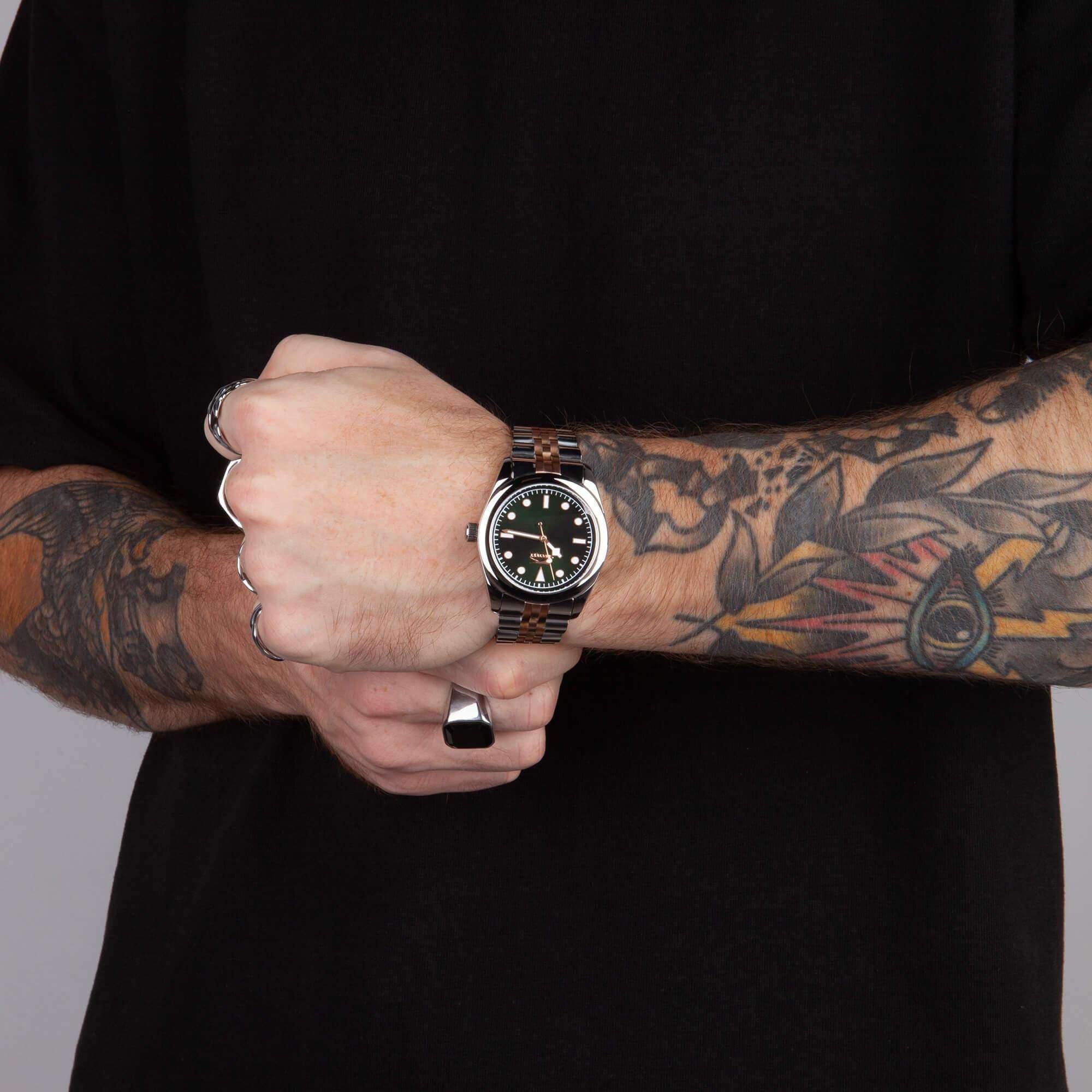 Мужские кварцевые часы Slazenger SL.09.2354.1.05 – идеальное сочетание классического дизайна и современных технологий, созданное для уверенных в себе мужчин. Корпус выполнен из суперметалла серебристого цвета, диаметром 41 мм и толщиной 12 мм, подчёркивает надежность модели и делает их идеальным аксессуаром для любой ситуации – будь то деловая встреча или повседневные выходы. Циферблат надёжно защищён минеральным стекломМинеральное стеклоМинеральное стекло представляет собой искусственно выращенный минерал кварца. Такое стекло отличается особой устойчивостью к повреждениям и царапинам. Уступает по некоторым качествам сапфировому стеклу., которое устойчиво к механическим повреждениям и сохраняет кристальную прозрачность. Браслет из суперметалла с частичным IP-покрытиемIP-покрытиеМетод ионного напыления. Демонстрирует повышенную устойчивость к истиранию, окислению и химическим веществам. Под воздействием высокого давления и температуры около 1500°C молекулы металла надёжно соединяются с частицами корпуса часов. удобно облегает запястье и фиксируется с помощью раскладной застёжкиРаскладная застёжкаТакой тип застёжки используется только на браслетах из металла. Она никогда не раскрывается полностью, происходит разделение на 2 и более частей. Раскладывающая застёжка снизит вероятность потери часов к минимуму., обеспечивая надёжность и комфорт в повседневном ношении. Стрелки и метки покрыты люминесцентным покрытиемЛюминесцентное покрытиеПозволяет считывать показания времени в темноте. Производители наносят на стрелки, часовые индексы, безель или поверхность циферблата светонакопительный состав, дающий холодное свечение., обеспечивающим отличную читаемость в темноте. Эти часы станут не просто аксессуаром, а надежным спутником в любой ситуации, подчеркивая ваш безупречный вкус и деловой стиль. Водозащита до 50 метров позволит защитить корпус от случайных брызг или капель дождя.