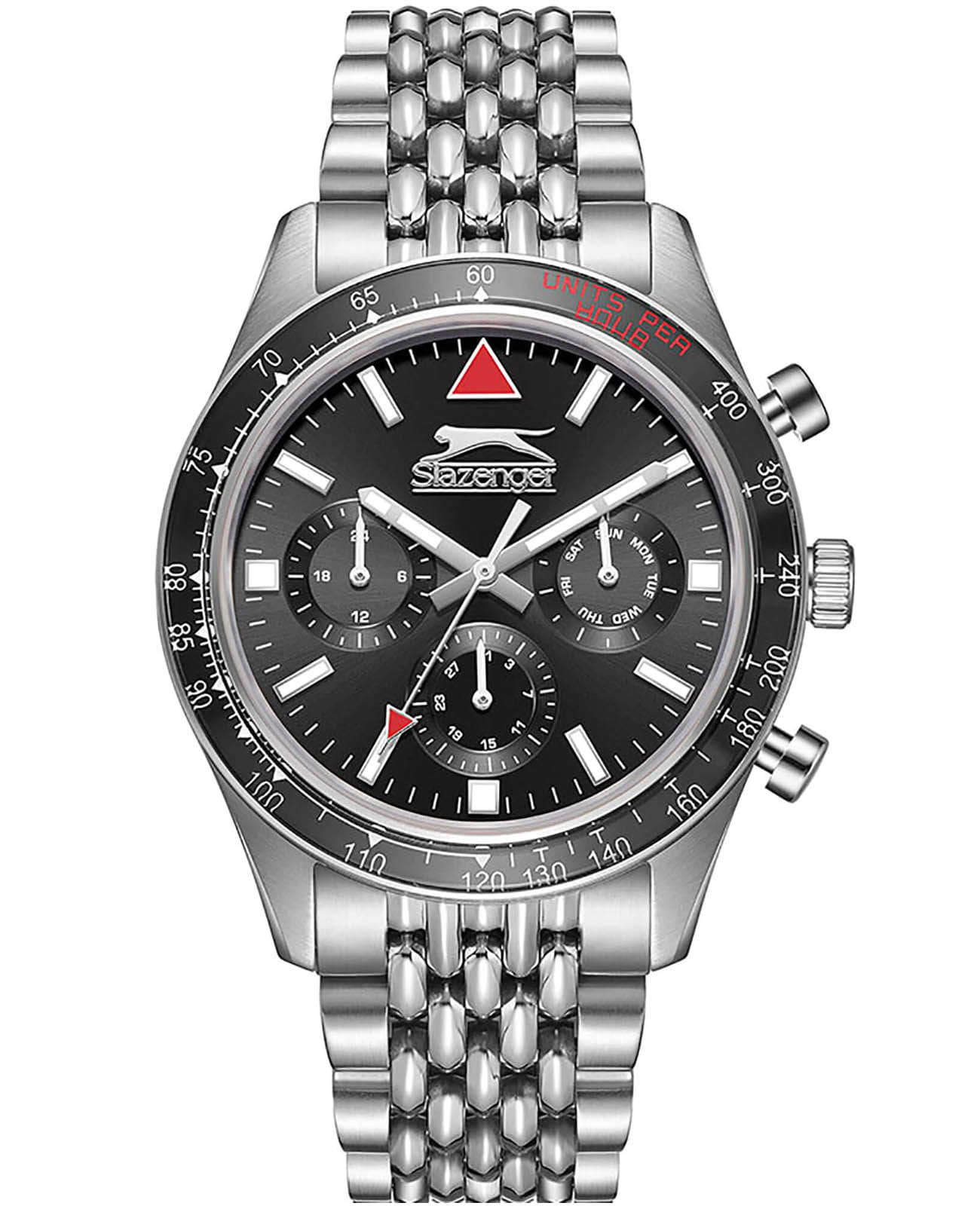 Мужские кварцевые часы Slazenger SL.09.2360.2.01 – идеальное сочетание классического дизайна и современных технологий, созданное для уверенных в себе мужчин. Корпус выполнен из суперметалла серебристого цвета, диаметром 43 мм и толщиной 12 мм, подчёркивает надежность модели и делает их идеальным аксессуаром для любой ситуации – будь то деловая встреча или повседневные выходы. Циферблат надёжно защищён минеральным стекломМинеральное стеклоМинеральное стекло представляет собой искусственно выращенный минерал кварца. Такое стекло отличается особой устойчивостью к повреждениям и царапинам. Уступает по некоторым качествам сапфировому стеклу., которое устойчиво к механическим повреждениям и сохраняет кристальную прозрачность. Неподвижный безельБезельВнешний ободок, закрепляющий стекло. В спортивных часах так называется поворотное кольцо с делениями на циферблате, выполняет роль таймера – замеряет отрезки времени на шкале. Неподвижный безель – элемент декора. Однонаправленно вращающийся безель на дайверских часах позволяет фиксировать моменты погружения и выныривания на поверхность. с IP-покрытиемIP-покрытиеМетод ионного напыления. Демонстрирует повышенную устойчивость к истиранию, окислению и химическим веществам. Под воздействием высокого давления и температуры около 1500°C молекулы металла надёжно соединяются с частицами корпуса часов. черного цвета. Стальной браслет на раскладной застёжкеРаскладная застёжкаТакой тип застёжки используется только на браслетах из металла. Она никогда не раскрывается полностью, происходит разделение на 2 и более частей. Раскладывающая застёжка снизит вероятность потери часов к минимуму. удобно облегает запястье, обеспечивая надёжность и комфорт в повседневном ношении. Стрелки и метки покрыты люминесцентным покрытиемЛюминесцентное покрытиеПозволяет считывать показания времени в темноте. Производители наносят на стрелки, часовые индексы, безель или поверхность циферблата светонакопительный состав, дающий холодное свечение., обеспечивающим отличную читаемость в темноте. Эти часы станут не просто аксессуаром, а надежным спутником в любой ситуации, подчеркивая ваш безупречный вкус и деловой стиль. Вынесенный циферблат с 24-х часовым указателем времени и функция тахиметраТахиметрРазмеченная шкала, располагается на ободке или безеле часов. Тахиметр позволяет рассчитать скорость на определённом участке пути, расстояние измеряется в километрах или милях.. Водозащита 50 метров позволит защитить корпус от случайных брызг или капель дождя.