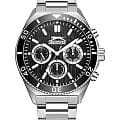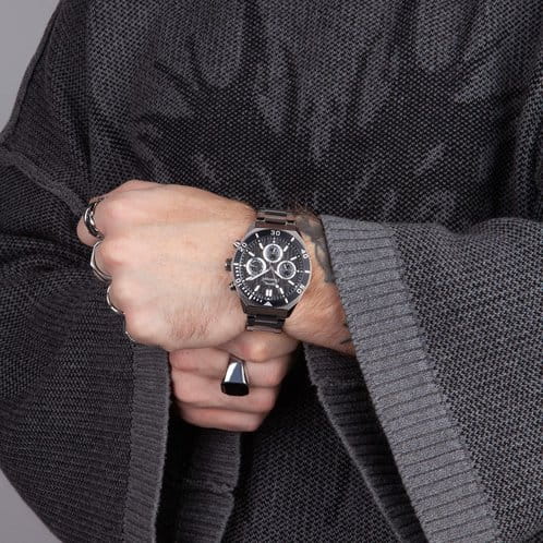 Мужские кварцевые часы Slazenger SL.09.2370.2.01 – идеальное сочетание классического дизайна и современных технологий, созданное для уверенных в себе мужчин. Корпус выполнен из суперметалла серебристого цвета, диаметром 44.5 мм и толщиной 13 мм, подчёркивает надежность модели и делает их идеальным аксессуаром для любой ситуации – будь то деловая встреча или повседневные выходы. Циферблат надёжно защищён минеральным стекломМинеральное стеклоМинеральное стекло представляет собой искусственно выращенный минерал кварца. Такое стекло отличается особой устойчивостью к повреждениям и царапинам. Уступает по некоторым качествам сапфировому стеклу., которое устойчиво к механическим повреждениям и сохраняет кристальную прозрачность. БезельБезельВнешний ободок, закрепляющий стекло. В спортивных часах так называется поворотное кольцо с делениями на циферблате, выполняет роль таймера – замеряет отрезки времени на шкале. Неподвижный безель – элемент декора. Однонаправленно вращающийся безель на дайверских часах позволяет фиксировать моменты погружения и выныривания на поверхность. с IP-покрытиемIP-покрытиеМетод ионного напыления. Демонстрирует повышенную устойчивость к истиранию, окислению и химическим веществам. Под воздействием высокого давления и температуры около 1500°C молекулы металла надёжно соединяются с частицами корпуса часов. черного цвета. Стальной браслет удобно облегает запястье и фиксируется с помощью раскладной застёжкиРаскладная застёжкаТакой тип застёжки используется только на браслетах из металла. Она никогда не раскрывается полностью, происходит разделение на 2 и более частей. Раскладывающая застёжка снизит вероятность потери часов к минимуму., обеспечивая надёжность и комфорт в повседневном ношении. Стрелки и метки покрыты люминесцентным покрытиемЛюминесцентное покрытиеПозволяет считывать показания времени в темноте. Производители наносят на стрелки, часовые индексы, безель или поверхность циферблата светонакопительный состав, дающий холодное свечение., обеспечивающим отличную читаемость в темноте. Эти часы станут не просто аксессуаром, а надежным спутником в любой ситуации, подчеркивая ваш безупречный вкус и деловой стиль. Вынесенный циферблат с 24-х часовым указателем времени. Водозащита 50 метров позволит защитить корпус от случайных брызг или капель дождя.