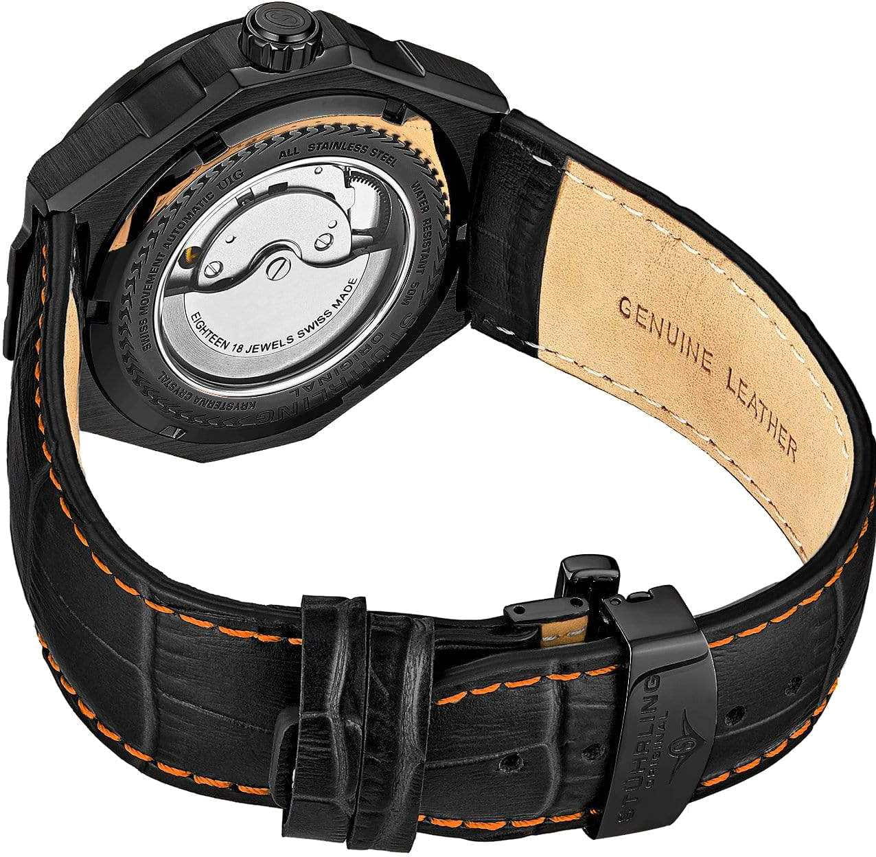 Stuhrling 379.06C — футуристические мужские часы, сочетающие смелый инженерный дизайн и надёжную механику. Архитектурный циферблат с многослойной структурой придаёт модели динамику и глубину. Стрелки и метки с люминесцентным покрытиемЛюминесцентное покрытиеПозволяет считывать показания времени в темноте. Производители наносят на стрелки, часовые индексы, безель или поверхность циферблата светонакопительный состав, дающий холодное свечение.. Корпус из нержавеющей стали с PVD-покрытиемPVDУльтратонкое покрытие наносится в технике вакуумного напыления, сочетает в себе нитрид титана особой прочности со слоем золота или оксида хрома. Несёт в себе декоративную или защитную функцию. выполнен с филигранной обработкой граней, подчёркивая технический характер часов. Прочное стекло KrysternaKrysternaKrysterna — инновационное стекло для наручных часов. Благодаря уникальной структуре, Krysterna объединяет ключевые преимущества двух материалов: твердость сапфира, защищающую от царапин, и гибкость минерального стекла, обеспечивающую устойчивость к деформациям. Такая комбинация делает его идеальным решением для часов, подверженных экстремальным нагрузкам, сохраняя при этом оптическую прозрачность. защищает сложную конструкцию от повреждений, сохраняя идеальную прозрачность. Кожаный ремень с контрастной строчкой и стандартной застежкой, обеспечивает комфорт и надёжную посадку. Stuhrling — выбор для тех, кто ценит оригинальность и технологичный стиль, где каждая деталь работает на впечатление.