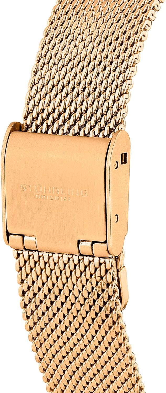 Stuhrling 3946.5 — элегантные женские часы, объединяющие строгую классику и современную функциональность. Корпус из нержавеющей стали с PVD-покрытиемPVDУльтратонкое покрытие наносится в технике вакуумного напыления, сочетает в себе нитрид титана особой прочности со слоем золота или оксида хрома. Несёт в себе декоративную или защитную функцию. создают ощущение монолитной надёжности, а глубокий циферблат украшенный кристаллом придаёт модели выразительность и характер. Стальной браслет миланского плетения с PVD-покрытиемPVDУльтратонкое покрытие наносится в технике вакуумного напыления, сочетает в себе нитрид титана особой прочности со слоем золота или оксида хрома. Несёт в себе декоративную или защитную функцию. на раскладном замкеРаскладной замокДанный вариант застежки используется только на часах с металлическим браслетом. Отличительная особенность такого крепления в том, что длина браслета становится универсальной и вы можете самостоятельно отрегулировать нужный вам размер – застежка просто двигается по браслету часов.. Прочное стекло KrysternaKrysternaKrysterna — инновационное стекло для наручных часов. Благодаря уникальной структуре, Krysterna объединяет ключевые преимущества двух материалов: твердость сапфира, защищающую от царапин, и гибкость минерального стекла, обеспечивающую устойчивость к деформациям. Такая комбинация делает его идеальным решением для часов, подверженных экстремальным нагрузкам, сохраняя при этом оптическую прозрачность. защищает циферблат от царапин, а надёжный кварцевый механизм гарантирует стабильную точность. Stuhrling — выбор уверенной девушки, ценящей сочетание функциональности, лаконичного дизайна и безупречной отделки.