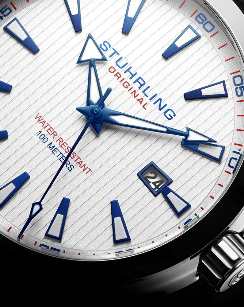 Stuhrling 3953.3 — элегантные мужские часы, объединяющие строгую классику и современную функциональность. Корпус из нержавеющей стали создают ощущение монолитной надёжности, а глубокий циферблат с вертикальной текстурой придаёт модели выразительность и характер. Стальной браслет на раскладной застёжкеРаскладная застёжкаТакой тип застёжки используется только на браслетах из металла. Она никогда не раскрывается полностью, происходит разделение на 2 и более частей. Раскладывающая застёжка снизит вероятность потери часов к минимуму. обеспечивает комфорт. Крупные метки и стрелки с люминесцентным покрытиемЛюминесцентное покрытиеПозволяет считывать показания времени в темноте. Производители наносят на стрелки, часовые индексы, безель или поверхность циферблата светонакопительный состав, дающий холодное свечение. обеспечивают идеальную читаемость даже в темноте. На позиции «3 часов» расположено аккуратное окно даты, подчёркивающее симметрию дизайна. Прочное стекло Krysterna защищает циферблат от царапин, а надёжный кварцевый механизм гарантирует стабильную точность. Stuhrling — выбор уверенного мужчины, ценящего сочетание функциональности, лаконичного дизайна и безупречной отделки.