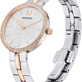 Часы Swarovski 5644081 — это воплощение элегантности и изысканности, созданное для тех, кто ценит стильные аксессуары. Эти швейцарские кварцевые часы, выполненные в корпусе из нержавеющей стали, обладают серебристым циферблатом. Инкрустация кристаллами добавляет часам неповторимый блеск и подчеркивает их роскошный дизайн.Минеральное стеклоМинеральное стеклоМинеральное стекло представляет собой искусственно выращенный минерал кварца. Такое стекло отличается особой устойчивостью к повреждениям и царапинам. Уступает по некоторым качествам сапфировому стеклу. надежно защищает циферблат от повреждений, а водозащита уровня 50 WR позволяет не беспокоиться о случайных контактах с водой в повседневной жизни. Стильный стальной браслет с частичным PVDPVDУльтратонкое покрытие наносится в технике вакуумного напыления, сочетает в себе нитрид титана особой прочности со слоем золота или оксида хрома. Несёт в себе декоративную или защитную функцию. покрытием оснащен застежкой «бабочка»Застёжка "бабочка"Такой вид застёжки дополняется предохранителями, помогающими избежать случайного раскрытия браслета. Обладают изящным исполнением. , обеспечивающей надежную фиксацию и комфортное ношение. БезельБезельВнешний ободок, закрепляющий стекло. В спортивных часах так называется поворотное кольцо с делениями на циферблате, выполняет роль таймера – замеряет отрезки времени на шкале. Неподвижный безель – элемент декора. Однонаправленно вращающийся безель на дайверских часах позволяет фиксировать моменты погружения и выныривания на поверхность. из нержавеющей стали с PVDPVDУльтратонкое покрытие наносится в технике вакуумного напыления, сочетает в себе нитрид титана особой прочности со слоем золота или оксида хрома. Несёт в себе декоративную или защитную функцию. покрытием украшенный паве из кристаллов, добавляет часам дополнительный шарм и делает их идеальным выбором для тех, кто ищет яркий аксессуар для завершения своего образа. Эти часы не только точные и надежные благодаря своему кварцевому механизму, но и невероятно стильные, что делает их отличным дополнением к любому наряду.