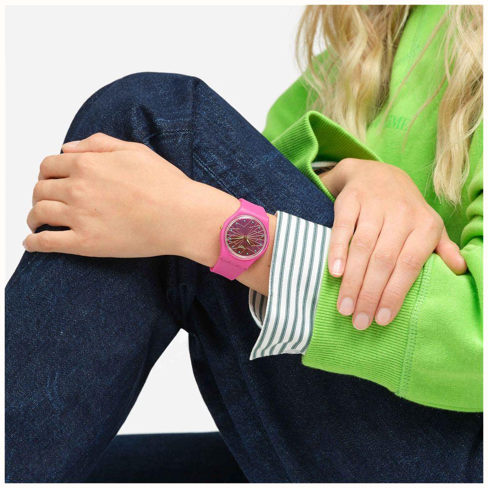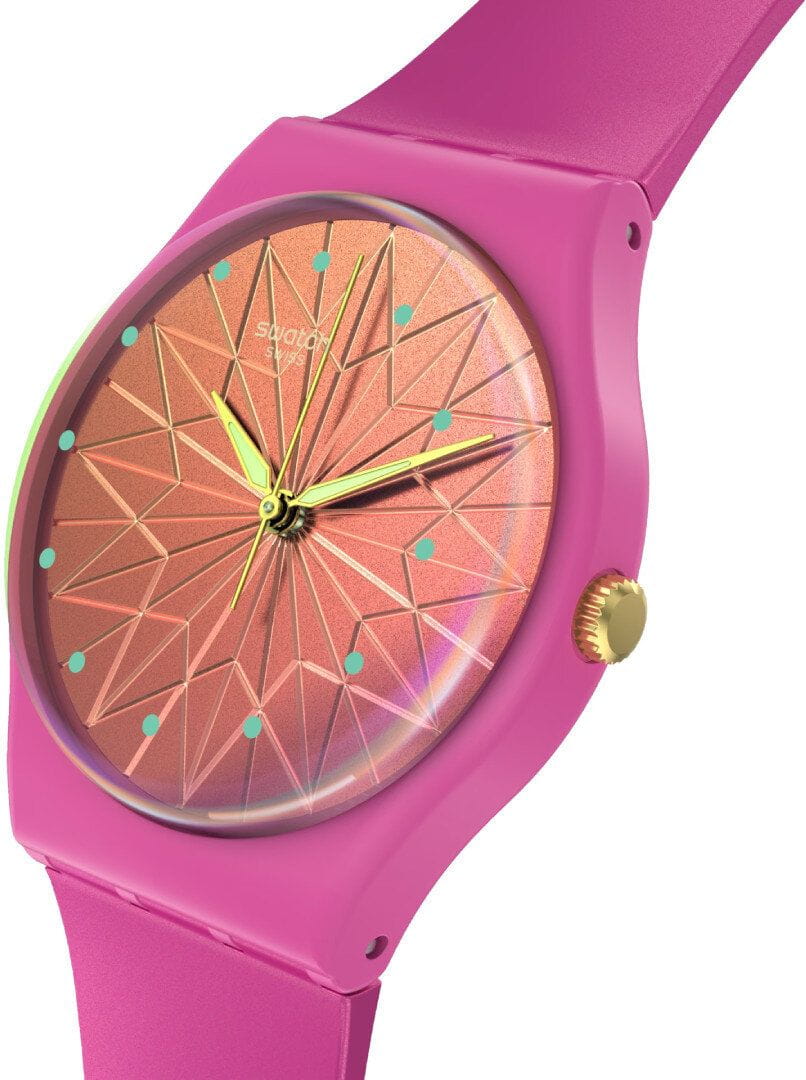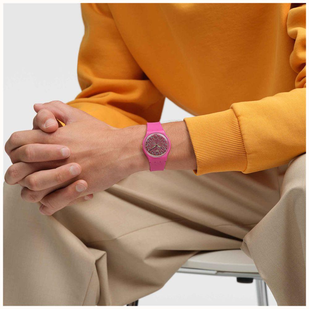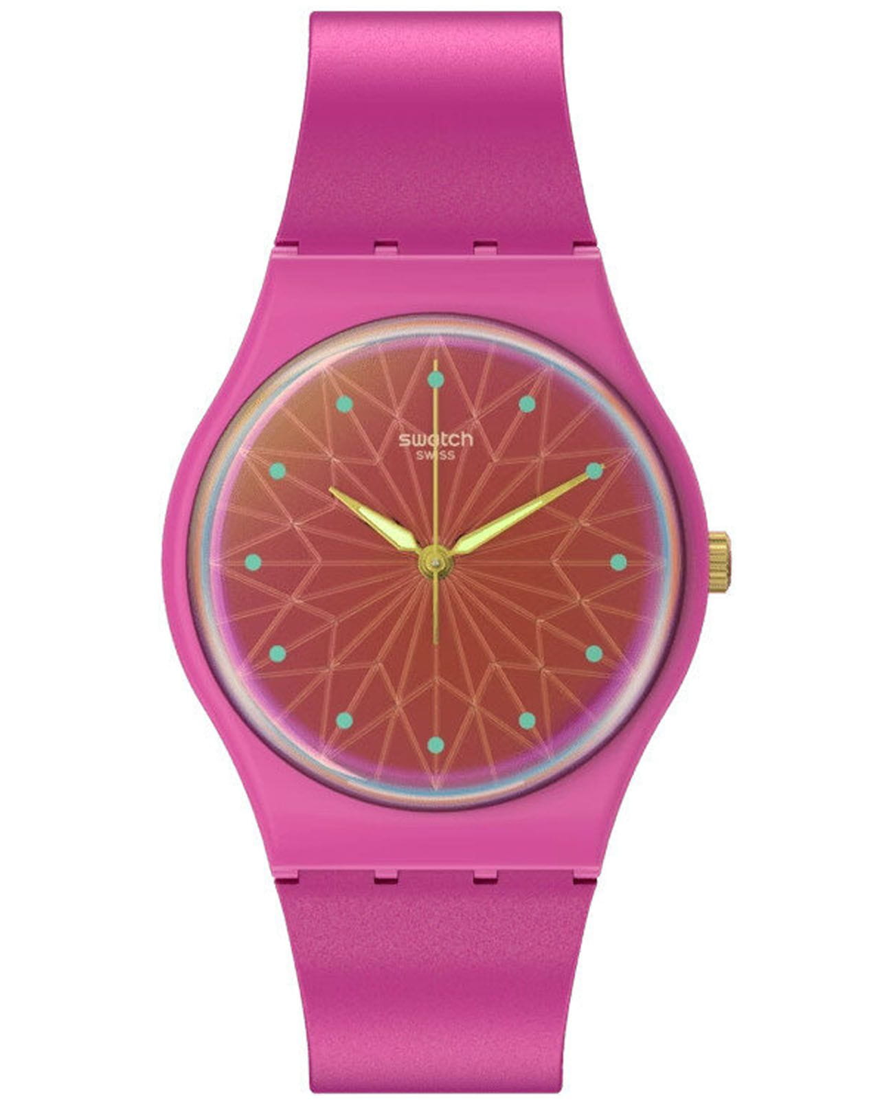 Часы Swatch SO28P110 — это стильный и современный аксессуар, который идеально подходит для повседневного ношения. Лакированный циферблат, украшенный гравировкой в форме звезды, изящно дополнен серебристыми стрелками со светонакопителем, которые обеспечивают отличную видимость в темноте. Часовые индексы напечатаны на стекле из биоматериала, покрытом Solar Spectrum, что придает особый анодированный эффект. Внутри часов установлен надежный кварцевый механизм, который обеспечивает точность хода. Эти часы водонепроницаемы до 30 метров, что позволяет не беспокоиться о случайных брызгах или дождевых каплях. Ремешок часов  выполнен из силикона и имеет регулируемую длину, застежка классическая из алюминия. Swatch SO28P110 — это идеальный выбор для тех, кто ценит сочетание стиля, комфорта и функциональности в одном аксессуаре.
