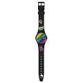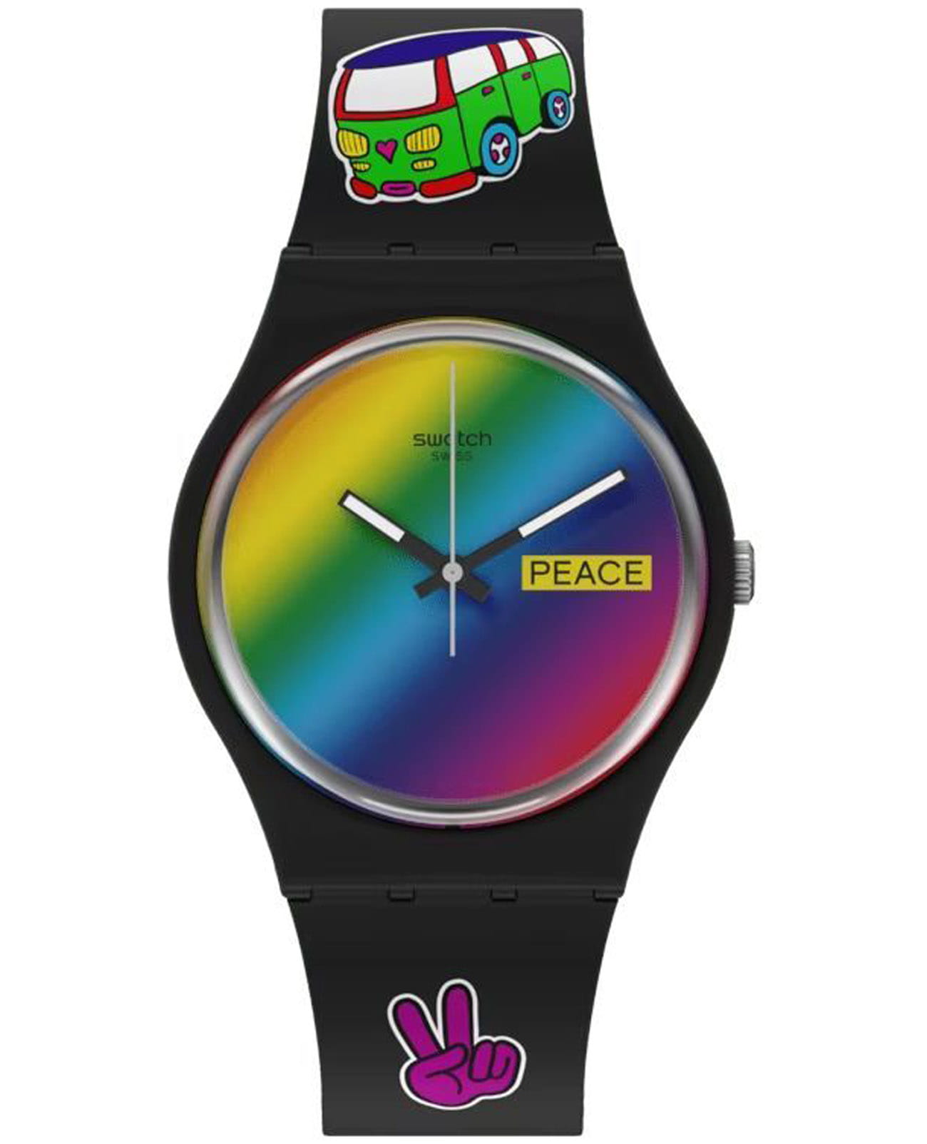 Часы Swatch SO31B101 — стильный и удобный аксессуар. Кварцевые часы с корпусом из биокерамики. Эти часы с радужным градиентом полностью вдохновлены стилем 60-х годов: они имеют корпус из черной биокерамики, стекло из биоматериала, черный силиконовый ремешок с многоцветными напечатанными символами и циферблат с радужным принтом. Слово "Мир" заменяет окно даты на этих часах. Часовая и минутная стрелки - с люминесцентным покрытиемЛюминесцентное покрытиеПозволяет считывать показания времени в темноте. Производители наносят на стрелки, часовые индексы, безель или поверхность циферблата светонакопительный состав, дающий холодное свечение., светятся в темноте. Ремешок силиконовый на стандартной застёжке. Внутри часов установлен надежный кварцевый механизм, который обеспечивает точность хода. Эти часы водонепроницаемы до 30 метров, что позволяет не беспокоиться о случайных брызгах или дождевых каплях. Swatch SO31B101 — это идеальный выбор для тех, кто ценит сочетание стиля, комфорта и функциональности в одном аксессуаре.