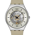 Часы Swatch SS07S145 — это стильный и современный аксессуар для тех, кто ценит лёгкость и комфорт. Часы идеально подойдут как для мужчин, так и для женщин. Эти ультратонкие часы имеют открытый серебристый циферблат с радиальной полировкой, серовато-бежевым кольцевым принтом и часовыми индексами черного цвета, а также черные на часовую и минутную стрелки нанесено люминесцентное покрытиеЛюминесцентное покрытиеПозволяет считывать показания времени в темноте. Производители наносят на стрелки, часовые индексы, безель или поверхность циферблата светонакопительный состав, дающий холодное свечение.. Матовый корпус и пряжка из нержавеющей стали прекрасно сочетаются с серовато-бежевым ремешком, дополненным тренчиком в тон. Водозащита 30 метров делает часы практичными для повседневного использования. Эти часы подойдут для повседневного ношения и станут ярким акцентом в вашем наряде.