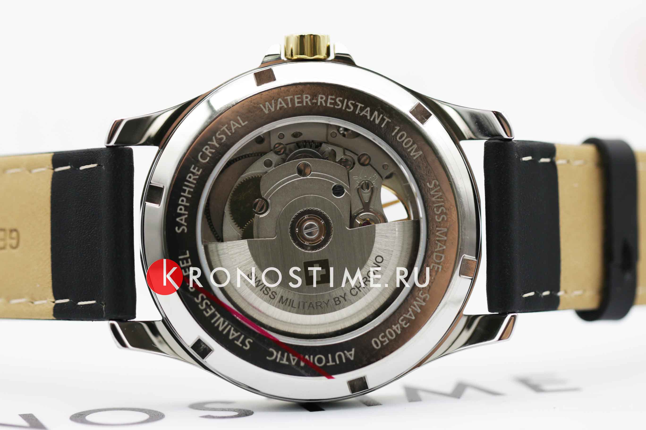 Мужские швейцарские наручные часы-скелетоны Swiss Military by Chrono SMA34050.07, механический механизм (автоматический калибр) с высокой точностью. Сапфировое стеклоСапфировое стеклоПрочный и надёжный материал из кристалла сапфира синтетического происхождения, характеризующийся особой твёрдостью и устойчивостью к царапинам и повреждениям. устойчивое к появлению царапин, обладающее высокой прозрачностью. Класс водозащиты: 100 метров, позволит плавать, нырять и заниматься другими водными видами спорта. Корпус часов изготовлен из стали IP-покрытиемIP-покрытиеМетод ионного напыления. Демонстрирует повышенную устойчивость к истиранию, окислению и химическим веществам. Под воздействием высокого давления и температуры около 1500°C молекулы металла надёжно соединяются с частицами корпуса часов. цвета желтое золото. Калибр Sellita SW-200. Сквозь прозрачное окошко на циферблате можно наблюдать за работой механизма часов. Заводная головка с защитой. Черный кожаный браслет на стандартной застежке.