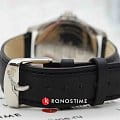 Внутри модели установлен надёжный швейцарский кварцевый механизм ETA F06.411, известный своей точностью и долговечностью. Чёрный ремешок из натуральной кожи с классической застёжкой добавляет аксессуару стильный акцент и обеспечивает комфортное ношение.