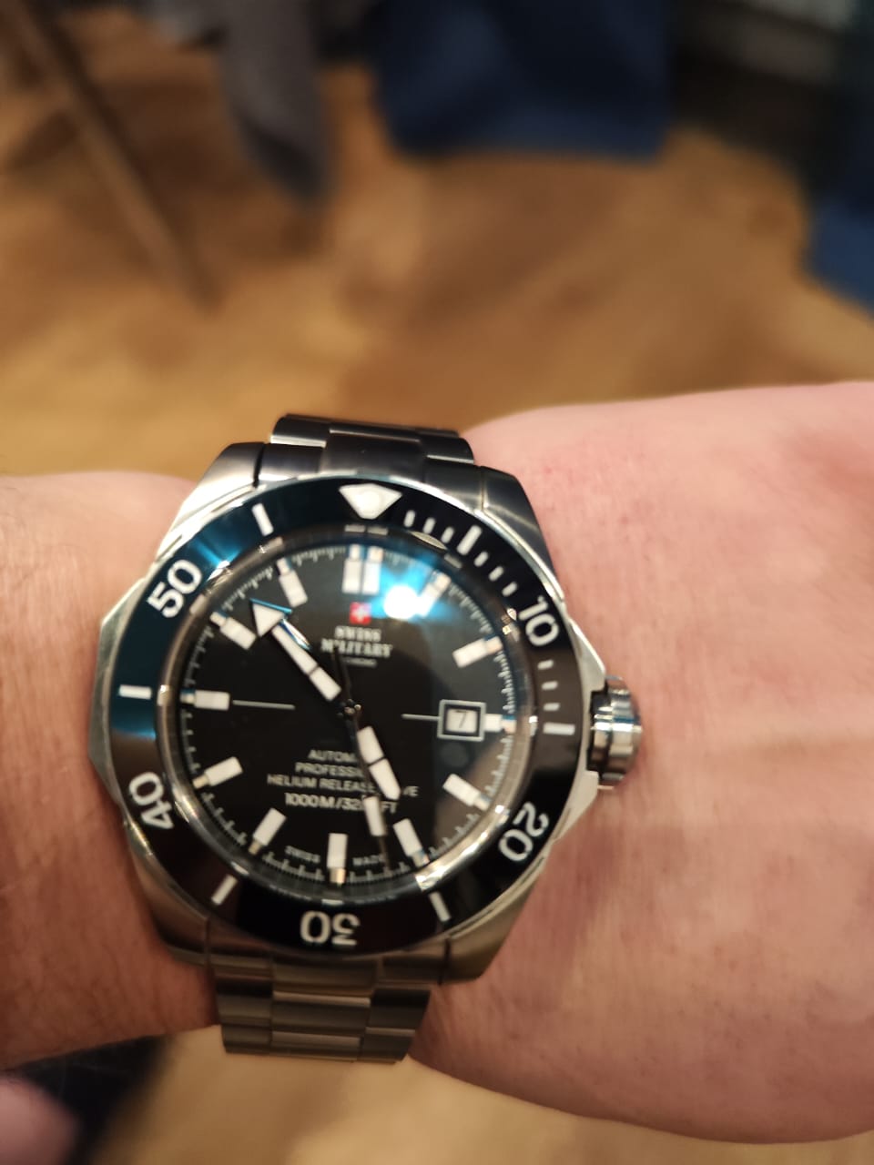Впечатление от этих часов потрясающее: механические часы с автоподзаводом, водостойкость 1000 м, индикация даты, стрелки и метки с люминесцентным покрытием, устойчивое к возникновению мелких механических повреждений сапфировое стекло, вращающийся керамический безель.