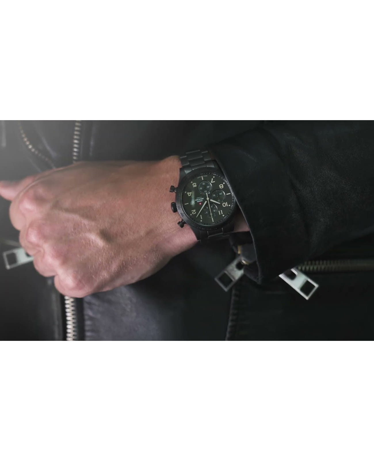 Мужские швейцарские часы-хронографХронографФункция позволяет измерять отрезки времени с особой точностью: часы, минуты, секунды. Верным признаком хронографа является наличие на циферблате 3 дополнительных окошек-счётчиков. с секундомеромСекундомерСекундоме́р — прибор, способный измерять интервалы времени с точностью до долей секунды. и с тахиметромТахиметрРазмеченная шкала, располагается на ободке или безеле часов. Тахиметр позволяет рассчитать скорость на определённом участке пути, расстояние измеряется в километрах или милях. Swiss Military by Chrono Sports SM34084.04, кварцевый механизм с высокой точностью. Минеральное стеклоМинеральное стеклоМинеральное стекло представляет собой искусственно выращенный минерал кварца. Такое стекло отличается особой устойчивостью к повреждениям и царапинам. Уступает по некоторым качествам сапфировому стеклу. устойчивое к мелким механическим повреждениям. Корпус часов изготовлен из нержавеющей стали с PVD-покрытиемPVDУльтратонкое покрытие наносится в технике вакуумного напыления, сочетает в себе нитрид титана особой прочности со слоем золота или оксида хрома. Несёт в себе декоративную или защитную функцию.. На циферблате расположены три дополнительных индикатора и окошко даты. Окошко даты находится в положении 3 часов. Стрелки с люминесцентным покрытиемЛюминесцентное покрытиеПозволяет считывать показания времени в темноте. Производители наносят на стрелки, часовые индексы, безель или поверхность циферблата светонакопительный состав, дающий холодное свечение.. Класс водозащиты: 100 метров, позволит плавать, нырять и заниматься другими водными видами спорта. Стальной браслет с PVD-покрытиемPVDУльтратонкое покрытие наносится в технике вакуумного напыления, сочетает в себе нитрид титана особой прочности со слоем золота или оксида хрома. Несёт в себе декоративную или защитную функцию. на раскладной застёжкеРаскладная застёжкаТакой тип застёжки используется только на браслетах из металла. Она никогда не раскрывается полностью, происходит разделение на 2 и более частей. Раскладывающая застёжка снизит вероятность потери часов к минимуму..