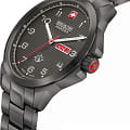 Швейцарские мужские часы Swiss Military Hanowa SMWGH2100341, кварцевый механизм с высокой точностью. Сапфировое стеклоСапфировое стеклоПрочный и надёжный материал из кристалла сапфира синтетического происхождения, характеризующийся особой твёрдостью и устойчивостью к царапинам и повреждениям. устойчивое к появлению царапин, обладающее высокой прозрачностью. Циферблат украшен декоративным узором Clous de Paris (Парижские гвозди). Часовая и минутная стрелки с люминесцентным покрытиемЛюминесцентное покрытиеПозволяет считывать показания времени в темноте. Производители наносят на стрелки, часовые индексы, безель или поверхность циферблата светонакопительный состав, дающий холодное свечение., которое светится в темноте после непродолжительной зарядки на свету. Класс водозащиты: 100 метров, позволит плавать, нырять и заниматься другими водными видами спорта. Корпус и браслет часов изготовлены из стали с IP-покрытиемIP-покрытиеМетод ионного напыления. Демонстрирует повышенную устойчивость к истиранию, окислению и химическим веществам. Под воздействием высокого давления и температуры около 1500°C молекулы металла надёжно соединяются с частицами корпуса часов. черного цвета. Окошки дня недели и даты находятся в положении 3 часа. Метки в виде арабских цифр, 12-ти часовая метка в виде фирменного логотипа. Рифленая заводная головка с защитой. Завинчивающаяся задняя крышка. Браслет с раскладной застёжкойРаскладная застёжкаТакой тип застёжки используется только на браслетах из металла. Она никогда не раскрывается полностью, происходит разделение на 2 и более частей. Раскладывающая застёжка снизит вероятность потери часов к минимуму.. Застежка с системой блокировки.