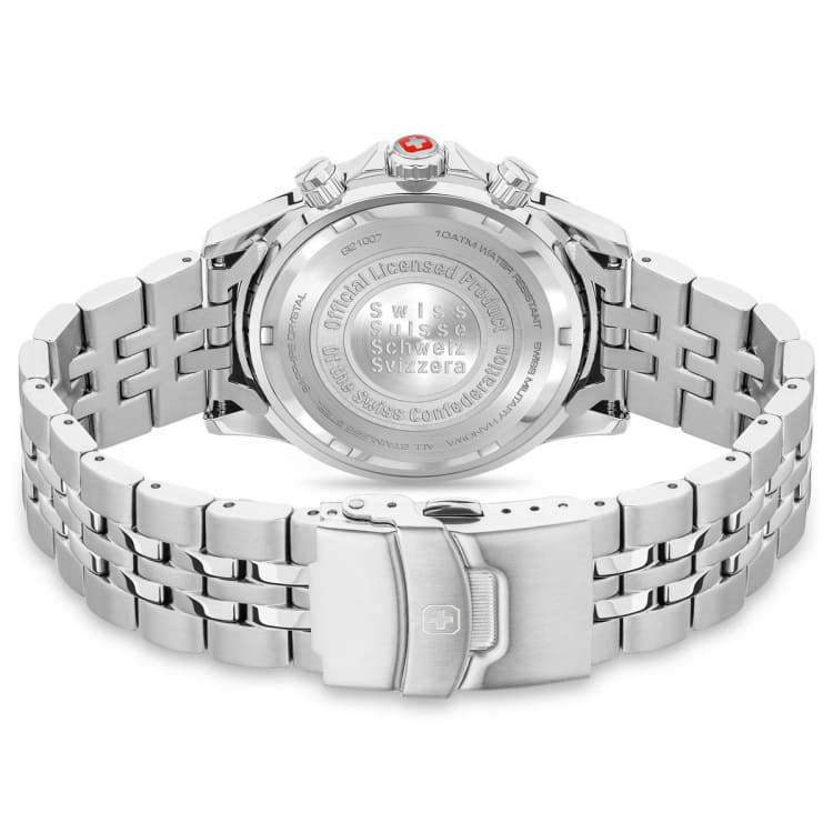 Мужские швейцарские часы с хронографом Swiss Military Hanowa Flagship X Chrono SMWGI2100701, кварцевый механизм с высокой точностью. Сапфировое стекло устойчивое к появлению царапин, обладающее высокой прозрачностью. Класс водозащиты: 100 метров, позволит плавать, нырять и заниматься другими водными видами спорта. Корпус часов изготовлен из стали, серебристого цвета.