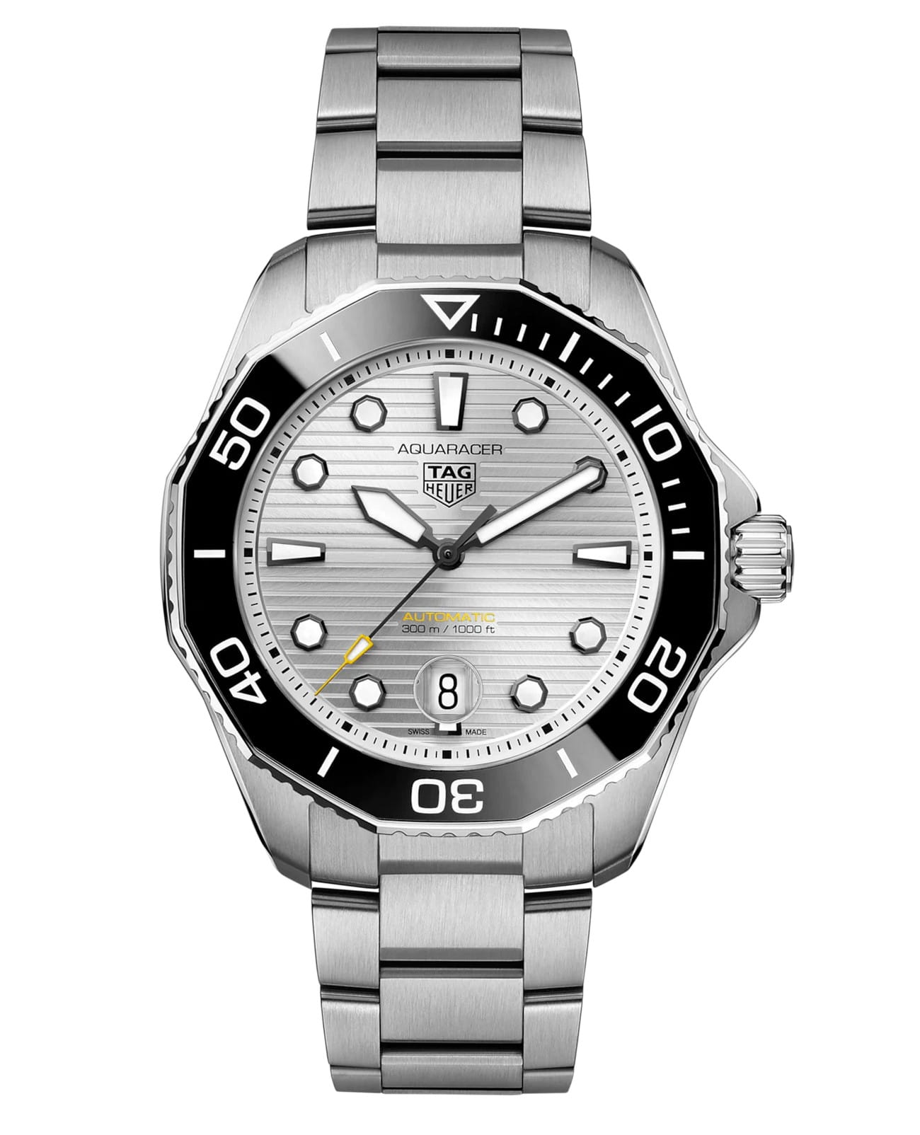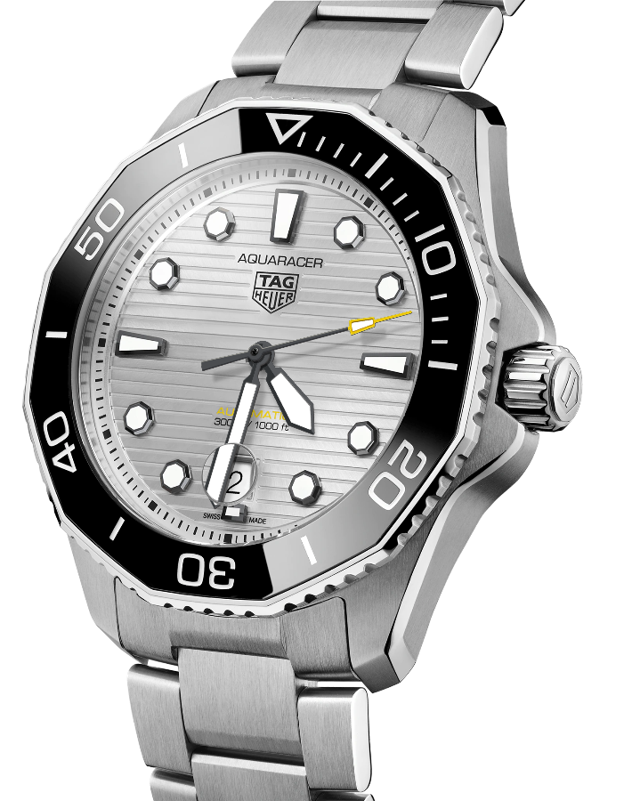 Новая специальная серия TAG Heuer Aquaracer с ярко-серебристым матовым циферблатом с узором «солнечные лучи» - настоящие часы для дайвинга. На покрытые золотом стрелки и часовые метки нанесено белое покрытие Super-LumiNova® для превосходной считываемости показаний. Мужские часы для дайвинга TAG Heuer Aquaracer Professional 300 WBP201C.BA0632, механический механизм (автоматический калибр) с высокой точностью. Сапфировое стекло устойчивое к появлению царапин, обладающее высокой прозрачностью. Класс водозащиты: 300 метров, позволит плавать, нырять и заниматься другими водными видами спорта. Корпус часов изготовлен из стали, серебристого цвета.