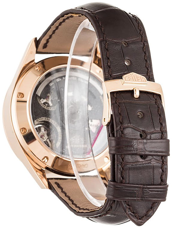 Механические мужские швейцарские часы-хронографХронографФункция позволяет измерять отрезки времени с особой точностью: часы, минуты, секунды. Верным признаком хронографа является наличие на циферблате 3 дополнительных окошек-счётчиков. TAG Heuer Carrera CAR5040.FC8177. Уникальная модель в винтажном стиле объединила в себе дизайн с секундомераСекундомерСекундоме́р — прибор, способный измерять интервалы времени с точностью до долей секунды. Mikrograph 1916 года и легендарный дизайн TAG Heuer Carrera, представляя миру сочетание традиционности и новшества. Carrera Mikrograph 1/100 of a Second. Лимитированная серия - 150 экземпляров. Уникальность данной модели состоит в том, что в ней соединили два балансовых колеса с раздельными системами спуска и трансмиссии. Одно из колес работает с частотой 28 800 и отвечает за показания времени и даты, запас хода 42 часа, а другое – с частотой 360 000 полуколебаний в час отвечает за показания хронографа. Шкала от 0 до 100 по окружности циферблата - это индикатор запаса хода для него. В механизме 62 камня. 396 деталей. Хронометр сертифицирован сертификат COSCСертификат COSCОфициальный сертификат, подтверждающий то, что часы ходят с особо высокой точностью. Для получения документа часы подвергаются тестовым испытаниям, разработанным швейцарским институтом тестирования хронометров COSC. Допустимая норма для механических часов -4/+6 секунд в день, для кварцевых моделей +/- 0,07 секунд в день.. Прозрачная задняя крышка. Циферблат с люминесцентным покрытиемЛюминесцентное покрытиеПозволяет считывать показания времени в темноте. Производители наносят на стрелки, часовые индексы, безель или поверхность циферблата светонакопительный состав, дающий холодное свечение. стрелок.