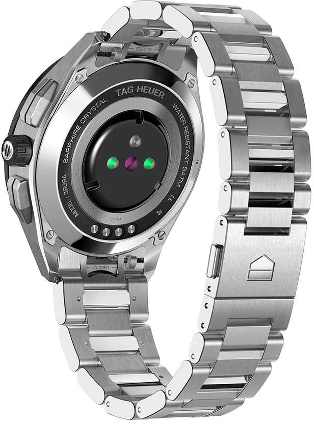 Новое поколение смарт-часов от TAG Heuer - это образец мастерства бренда, воплощающего в себе передовые технологии двадцать первого века. Эти часы – идеальный выбор для ценителей часового искусства и приверженцев активного образа жизни. Connected. Унисекс. Смарт-часы работают на базе четырехъядерного процессора Qualcomm® Snapdragon™ Wear 3100 и оснащены операционной системой Wear OS от Google. Совместимы с ОС Android 6.0+ (исключая версию Go) и iOS 10.0+. Встроенная система бесконтактной оплаты NFC (Google Pay). Микрофон. Голосовой помощник Google Assistant и Google Translate. Возможность установка приложений из Google Play. Возможность управления функциями телефона как через сенсорный дисплей, так и через функциональные кнопки и заводную головку. Подключение к интернету через Wi-Fi или с помощью интернета мобильного телефона. Синхронизация со смартфоном через Bluetooth. Поддержка спортивных онлайн-сообществ. Совместимость с приложением TAG Heuer Sports. Настраиваемые экраны: скелетонизированный циферблат мануфактурного механизма Heuer 02, цифровой механизм Carrera Heuer 01, анимация Orbital на основе уникальной нейросетевой модели, а также дисплей, вдохновленный фирменной спиралью баланса из углеродного композита на основе гексагональных нанотрубок. Настраиваемая подсветка (яркость/режим). Цветной сенсорный дисплей на органических светодиодах (OLED) размером 1,39'' и разрешением 454х454 пикселей (326 ppi). Второй часовой пояс. SPLIT-хронограф. Сервисы навигации GPS, GLONASS, BeiDou и QZSS. Пульсометр, компас, акселерометр, гироскоп, секундомер, таймер и будильник. Мониторинг количества израсходованных калорий. Вибро-оповещение. Перезаряжаемый аккумулятор 430мАч, которого хватает на сутки, включая часовую тренировку. Время полной подзарядки 1,5 часа. Керамический безель. Круглый корпус. Задняя крышка корпуса с винтовым креплением. Стальной браслет с системой быстрой замены. Раскладывающаяся застежка из титана. В комплект входят магнитное зарядное устройство аккумулятора и специальный дорожный чехол.